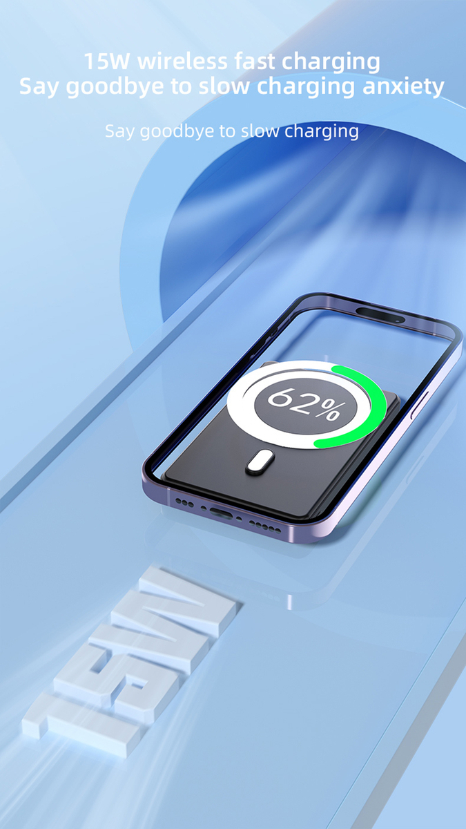 Magnetic 5000mAh Wireless Power Bank 15W for MagSafe iPhone - Fast Charging