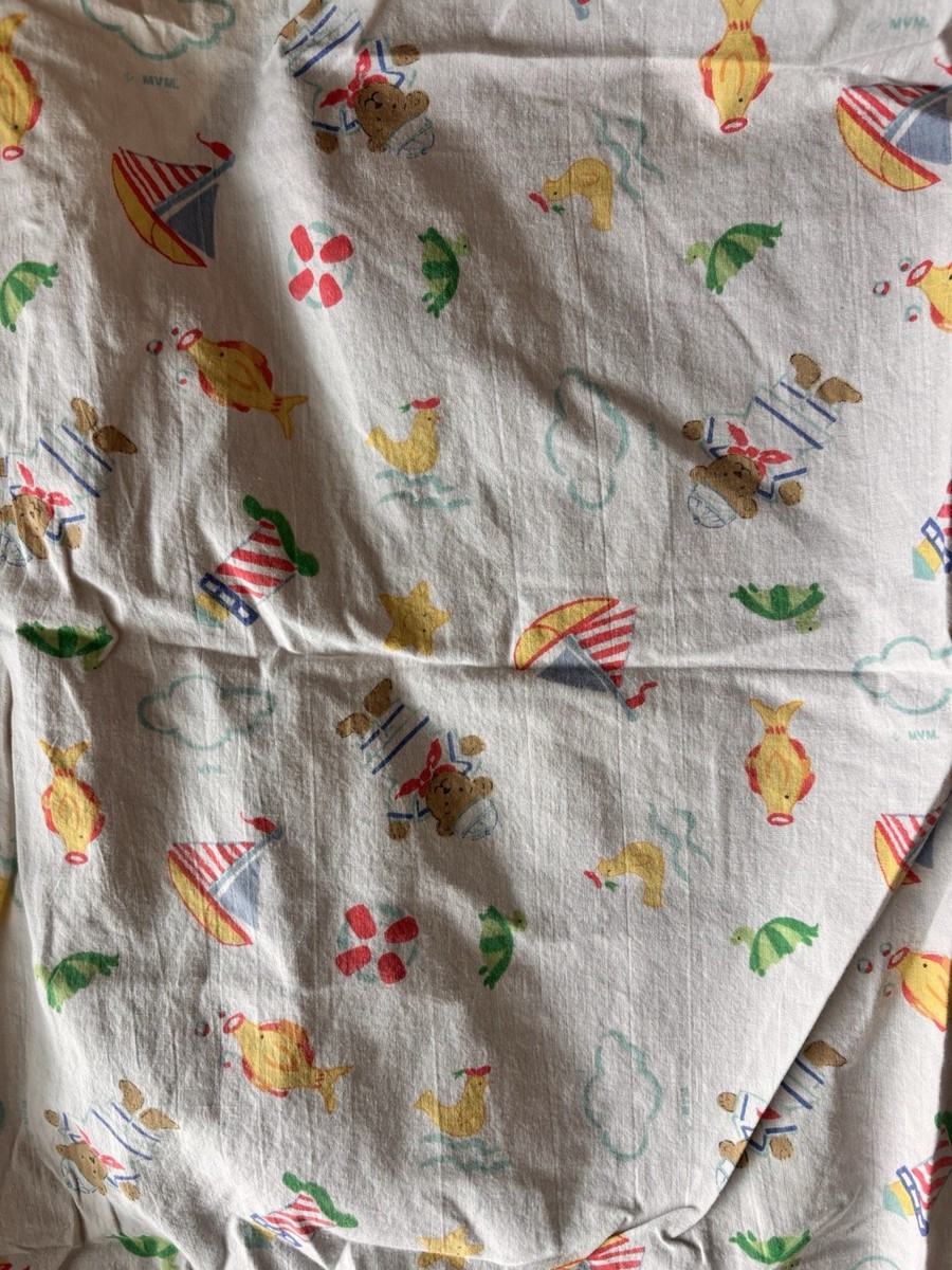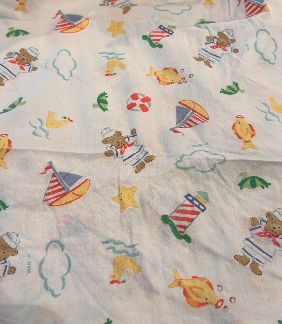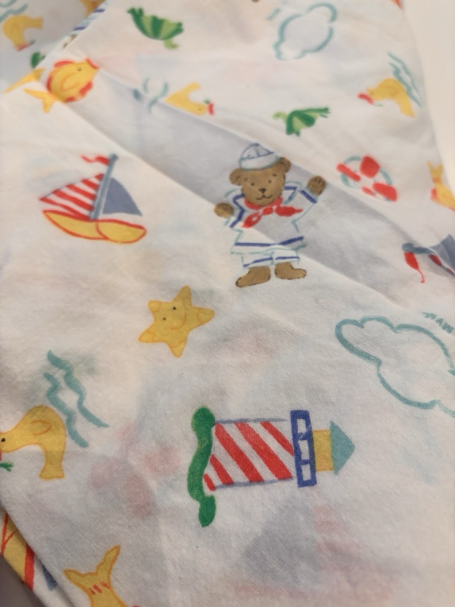 Vintage Teddy Beddy Bear Cotton Crib Sheet Riegel ROM 100% Cotton Sailboat