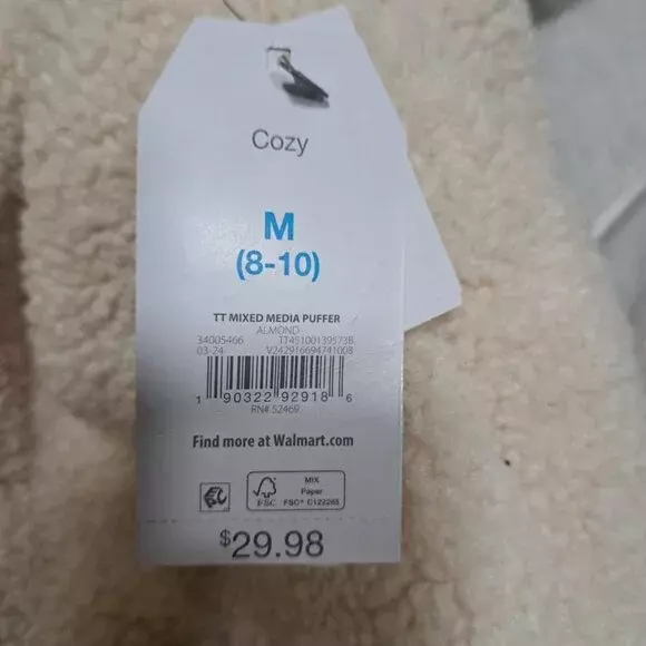 Time and Tru Women's Mixed Media Puffer Jacket M(8-10)
