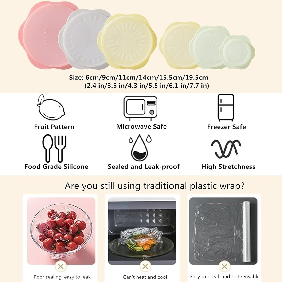 Embrace a cleaner, more organized kitchen with our stylish stretch lids ? order your 6-Pc set today and elevate your food storage game!