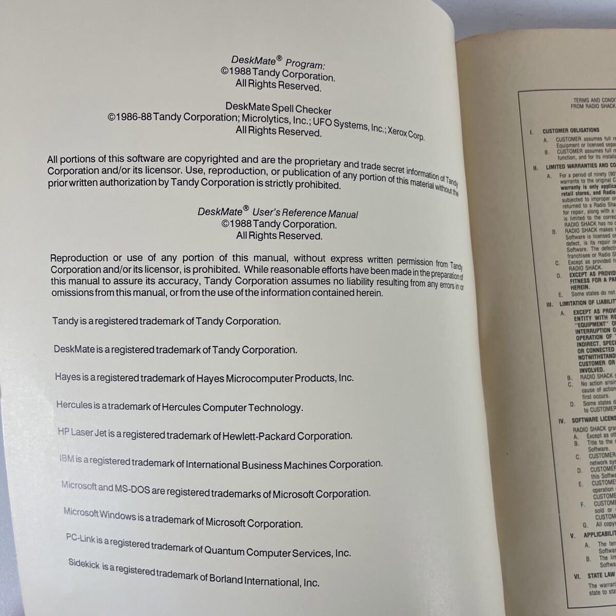 Tandy Deskmate Users Reference Manual 1988 Radio Shack Tandy Computer Manual
