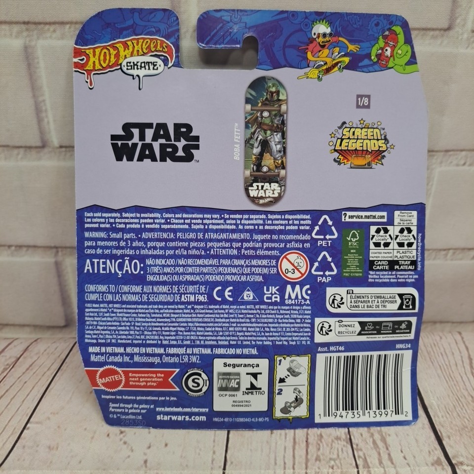 2022 Hot Wheels Skate Fingerboard STAR WARS BOBA FETT Screen Legends 1/5 HTF