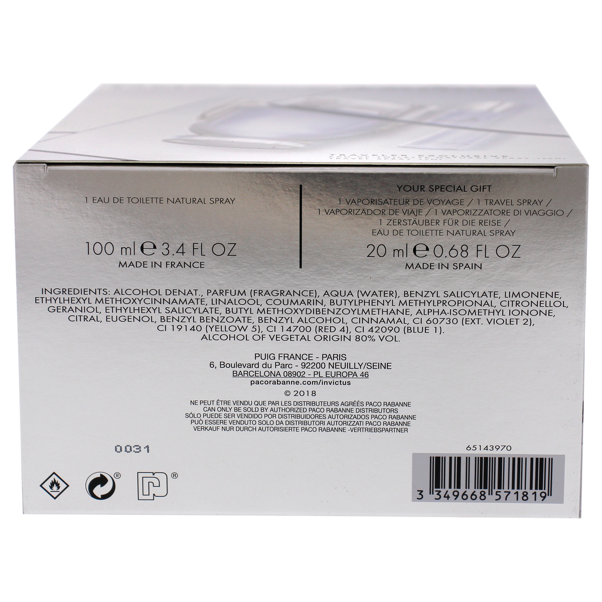 Invictus by Paco Rabanne for Men - 2 Pc Gift Set 3.4oz EDT Spray, 0.68oz EDT Spr