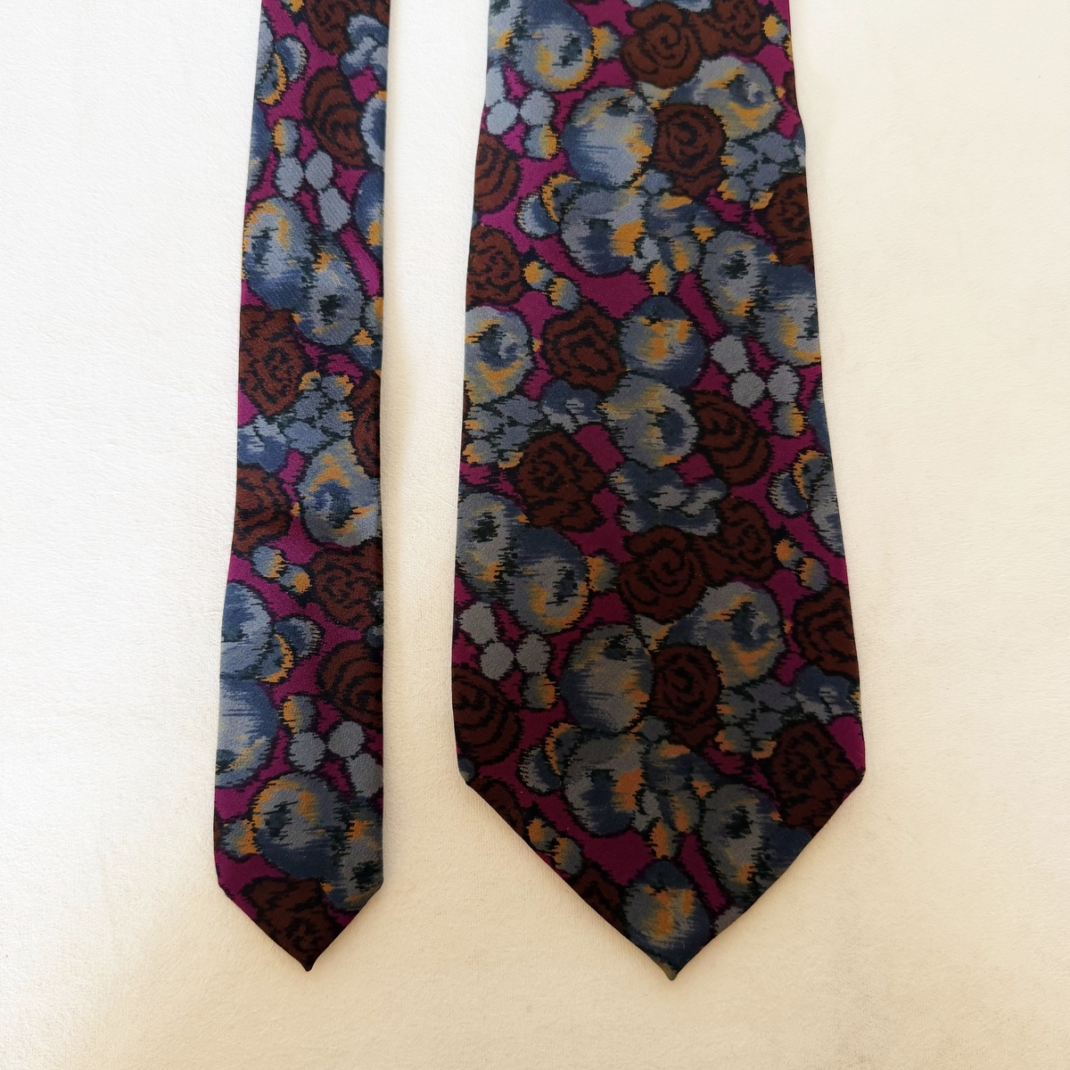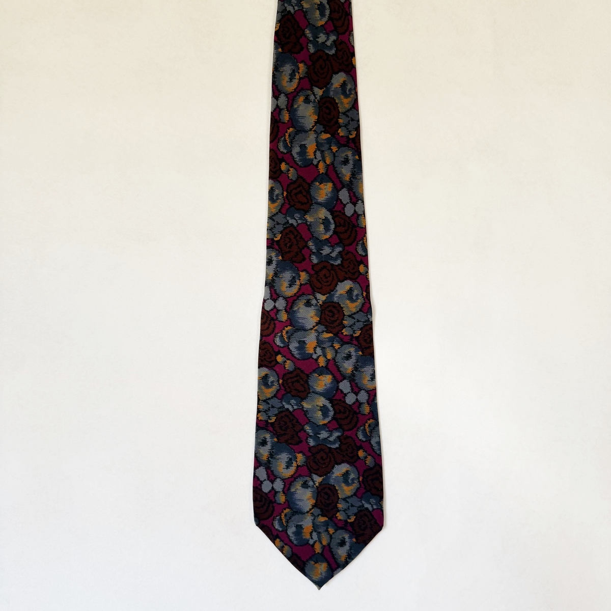Andrew Fezza Neck Tie Floral Abstract 100% Silk Menswear Blue Burgundy Handmade