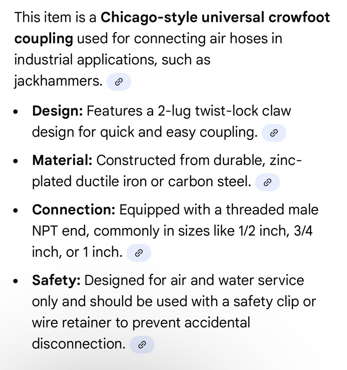 4-Male 3/4” NPT Universal Crowfoot Chicago Style 2-Lug Air Coupling Plated Iron