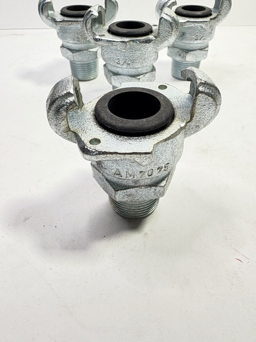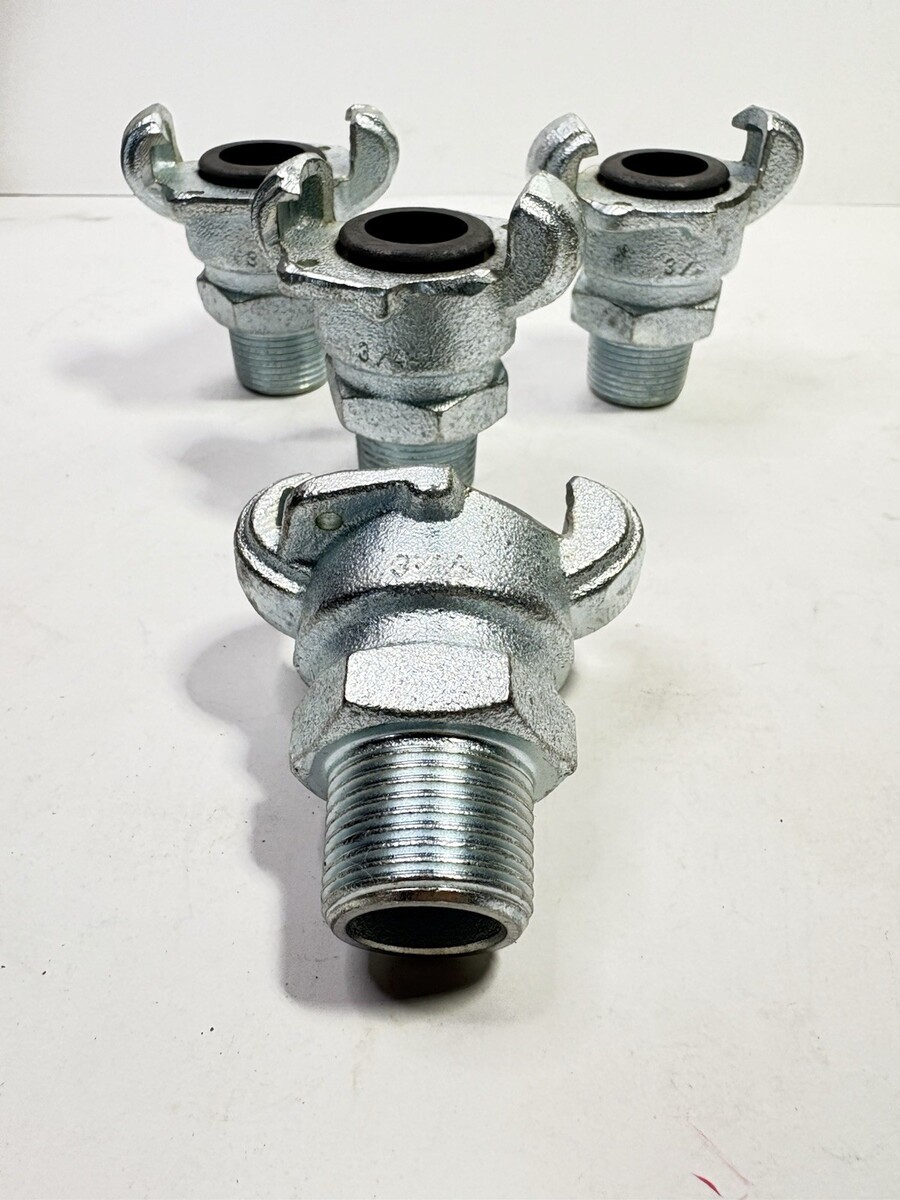 Lot of 4, zinc plated iron, Chicago Style, 2-lug, universal, crowfoot, air/pneumatic coupling X 3/4 inch male NPT.