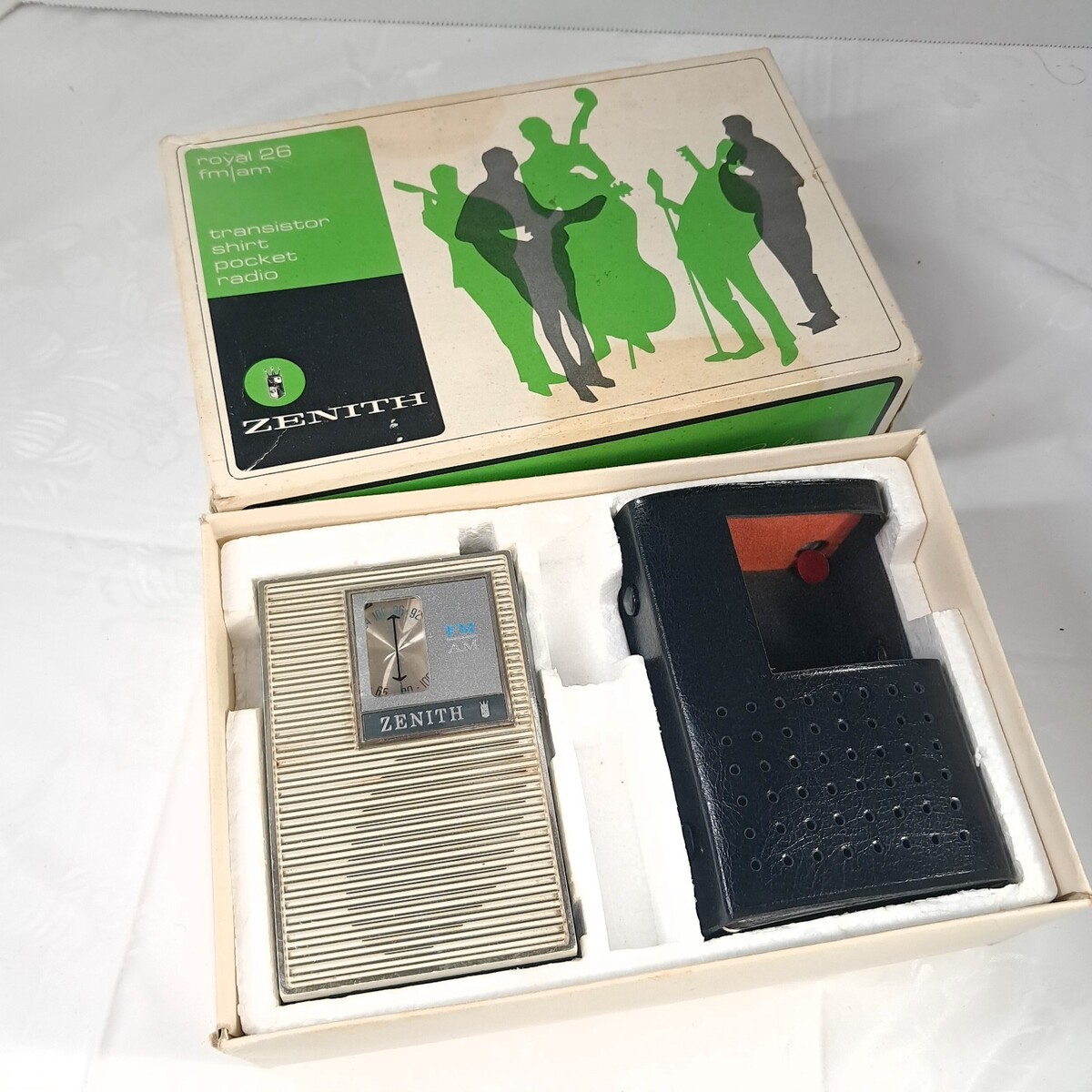 Zenith Royal 26 FM AM Transistor Shirt Pocket Radio box case r26y Vintage READ