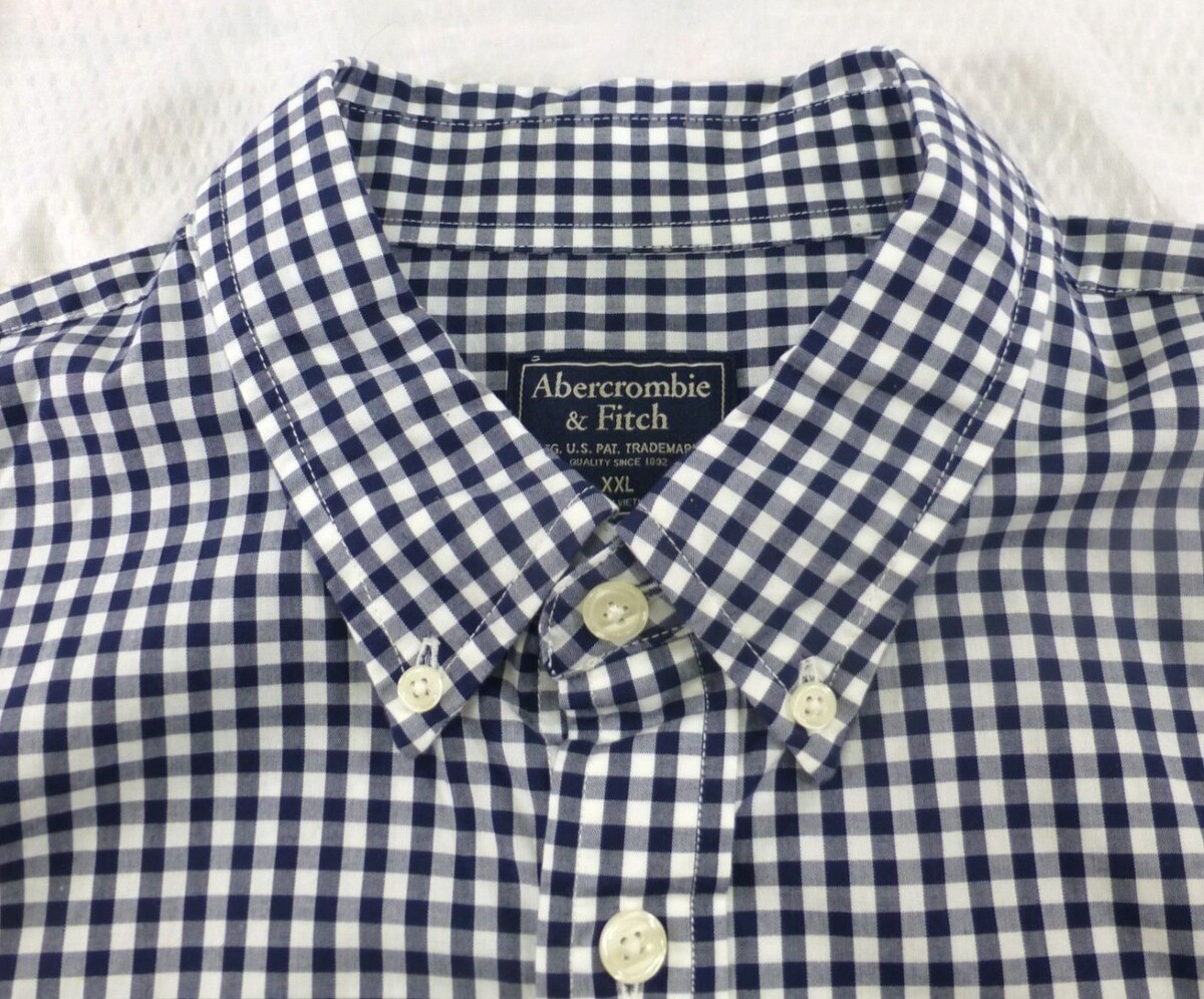 Abercrombie & Fitch Navy Blue Gingham Check Button Down Casual Shirt Xxl Preppy