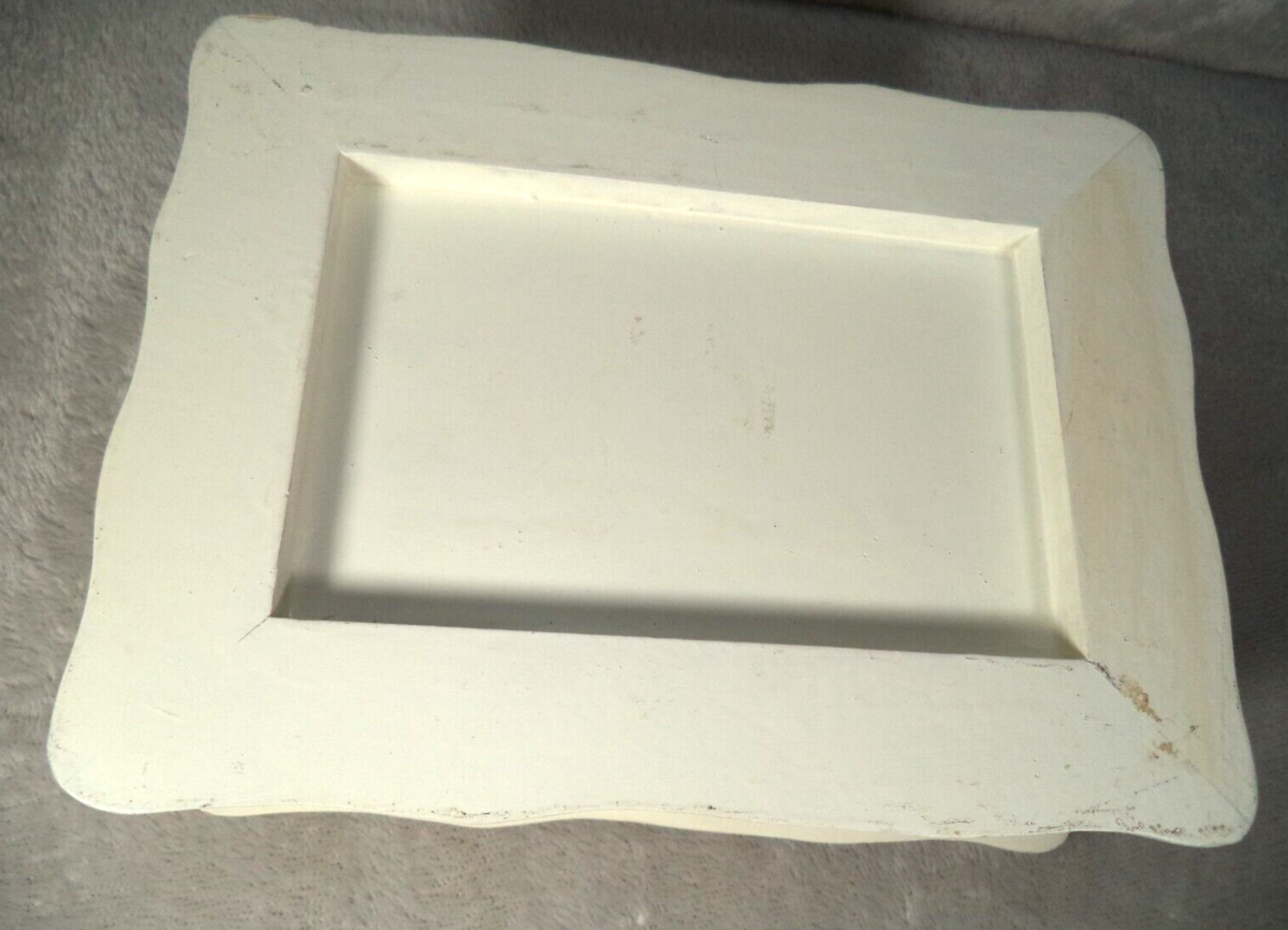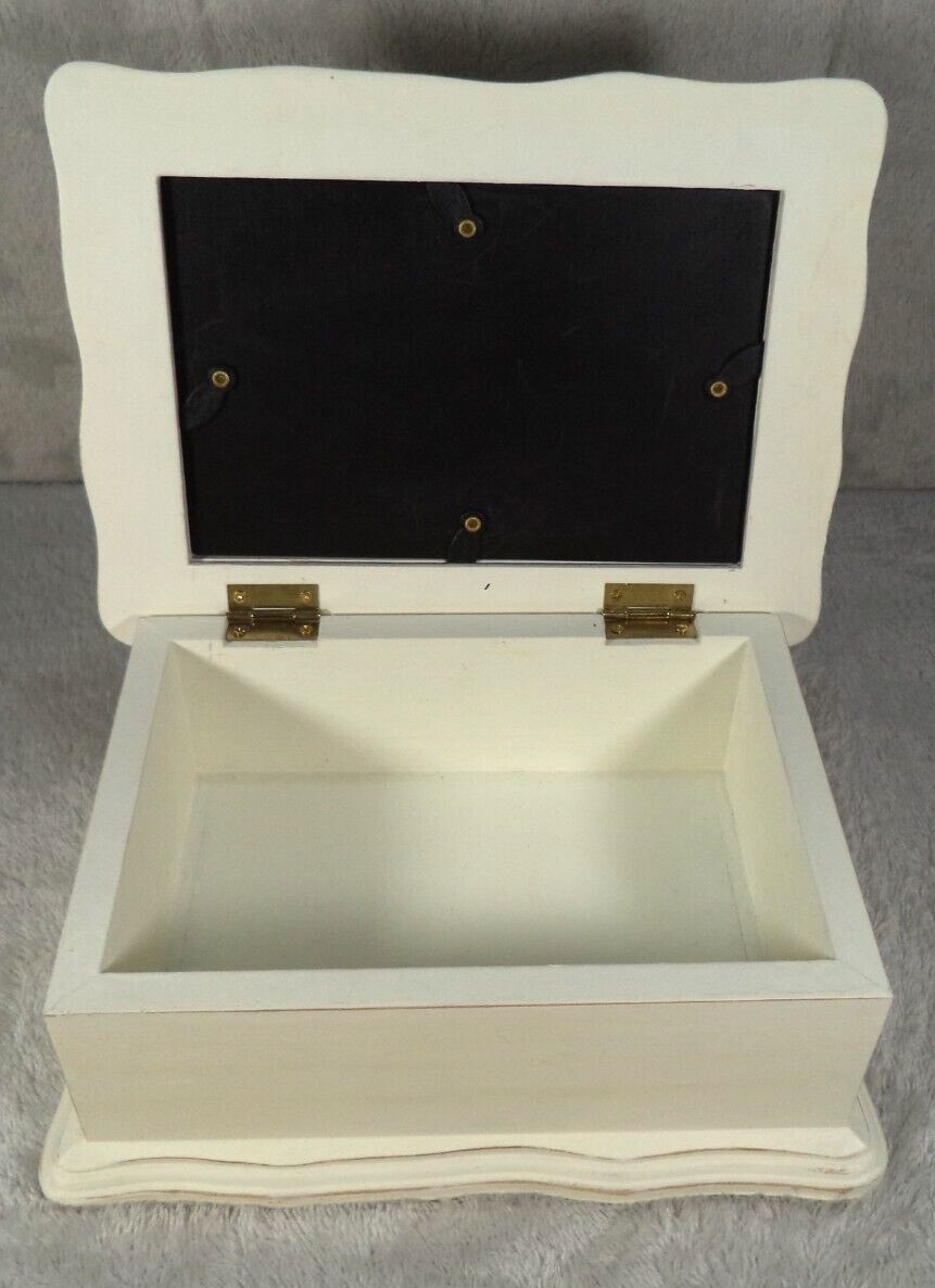 Cottage Core Farmhouse Beige Wooden Jewelry Box with Photo Frame Top Hinged Lid
