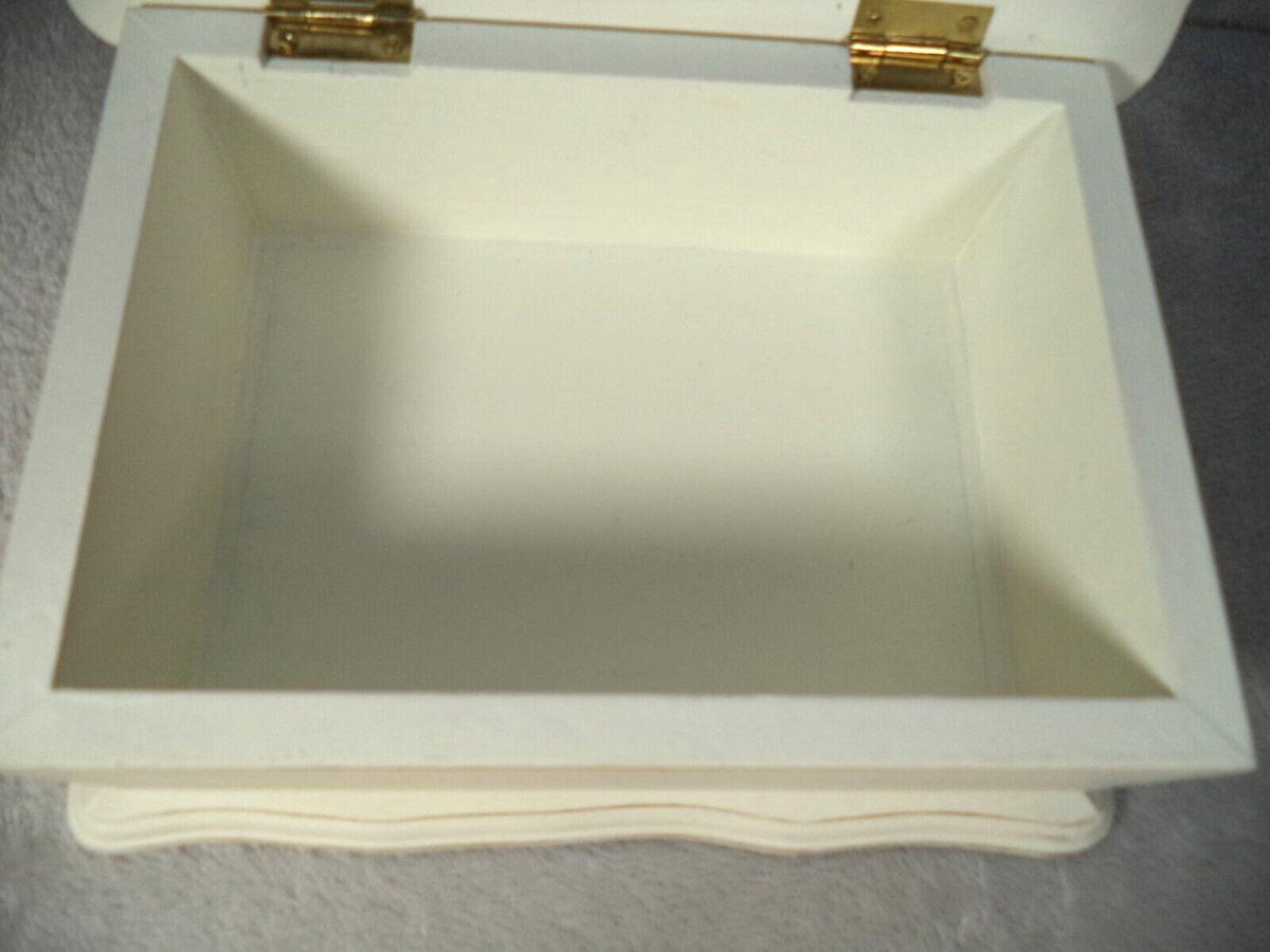 Description: Very nice wood jewelry/trinket box with glass top for you to insert your own photo. Can storage anything from jewelry, trinkets to coins. Use your imagination! Great to store on a dresser or other furniture.