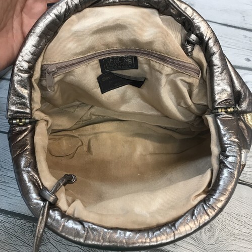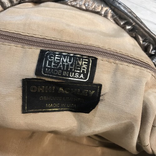 OHH ASHLEY Silver Leather Shoulder Or Handbag Purse Gold. There is some normal wear on this purse, it was purchased at an older estate sale. Inside tag is trying to come loose as noted in photos