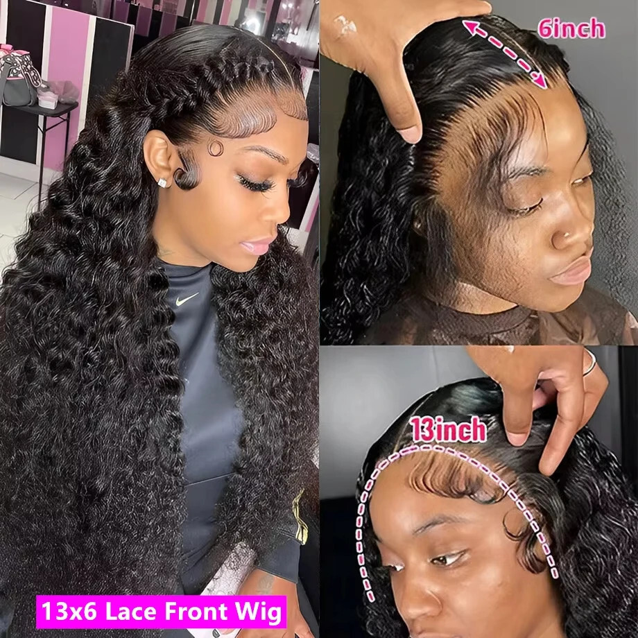 Deep Wave Frontal Wig 13x6 Hd Lace Curly Human 13x6 Lace Wig 40inches 2.2 france