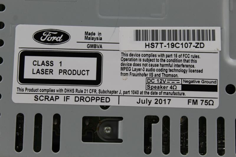 FUSION 17-20 receiver, AM-FM-CD-MP3 (single disc), w/satellite radio, w/o High Definition radio; ID HS7T-19C107-ZD