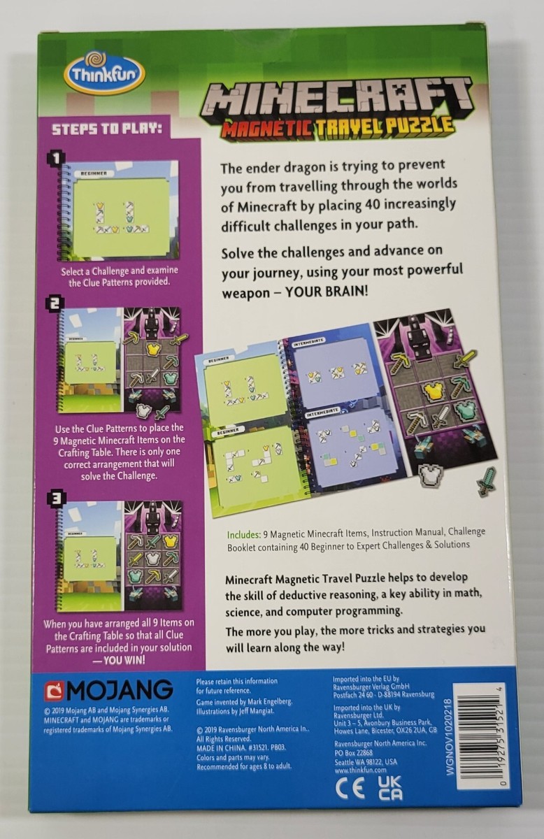R) Minecraft Magnetic Travel Puzzle by Thinkfun 40 Challenges Beginner - Expert