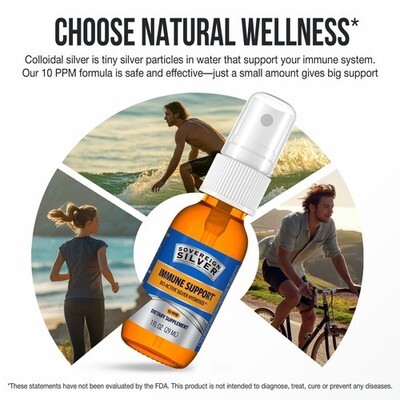 2 Bottles Expiration Date of 6/2026 ? POWERFUL IMMUNE SUPPORT* FROM THE UNDISPUTED LEADER IN COLLOIDAL SILVER - Sovereign Silver is the premium selling silver supplement in North America for immune support*. Sovereign Silver represents the ultimate refinement of the colloidal silver category. ? THE RIGHT DOSE, CONCENTRATION, AND PARTICLE SIZE - Sovereign Silver features an unprecedented particle size as small as 0.8 nm (nanometers). Our 10 ppm concentration is more effective* and safe* than competing brands. ? GLASS BOTTLES, NOT PLASTIC - We produce the highest quality product available and we ONLY bottle in glass. Glass bottles are crucial to ensure the stability and quality of Bio-Active Silver Hydrosol that is impossible with the use of plastic bottles. ? HIGHEST SAFETY*, PURITY AND EFFICACY* - Sovereign Silver has only two ingredients: 99.999% pure silver and pharmaceutical-grade purified water. Sovereign Silver is vegan, gluten free, non-GMO and allergen-free. ? HISTORY?S BEST KEPT SECRET - Sovereign Silver represents the intersection of a long healing* tradition and state-of-the art modern science. Silver is a natural element that can be found in whole grains, mushrooms, mammalian milk, and water.