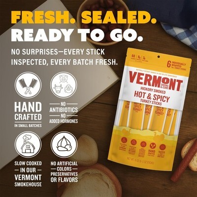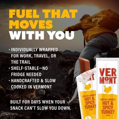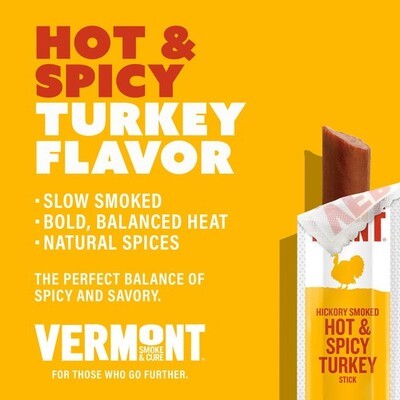 Dated 3/2026 ? Meat Snacks That Go Further - Enjoy bold, smoky turkey sticks infused with southwestern chili, paprika, and chipotle. Each 1oz stick delivers savory heat and clean protein-ideal for trails, lunchboxes, or anytime fuel. ? Bold, Balanced Flavor - Our hot spicy turkey blends robust smoky heat with just enough spice-not over the top. These meat snacks deliver flavor without greasiness or harsh burn. ? Fresh and Clean Snacking - Individually wrapped meat sticks sealed for freshness. No refrigeration needed until opened. Easy to toss in your bag for on-the-go protein snacks that stay fresh. ? Individually Wrapped - 24 meat snacks per box. Like true Vermonters, we don't cut corners on quality. Grab and go-no guesswork, no waste. Each mini stick delivers consistent, quality, healthier snack options. ? Beyond the Usual Bite - Vermont Smoke Cure goes further for those who push past the grind-crafting clean, flavorful snack sticks for people who go beyond snacking, beyond ordinary, and beyond expectations