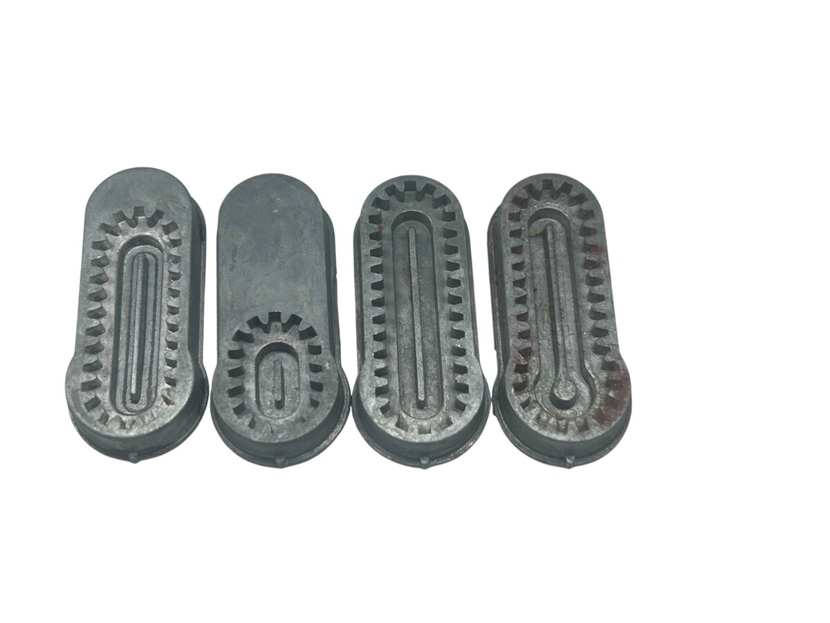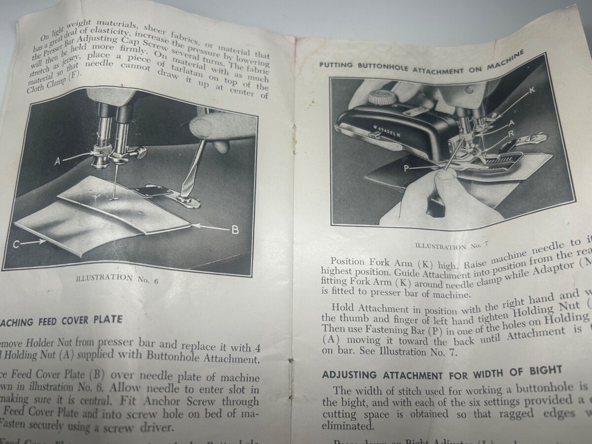 A meticulously preserved mid-century sewing tool that transforms ordinary sewing machines into precise buttonhole creators. This vintage buttonholer attachment offers craftspeople and textile enthusiasts a glimpse into the mechanical ingenuity of domestic manufacturing from the 1950s .