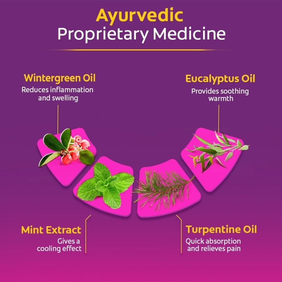 100% Ayurvedic formula – Contains Eucalyptus Oil, Wintergreen Oil, Turpentine Oil Mint Extract