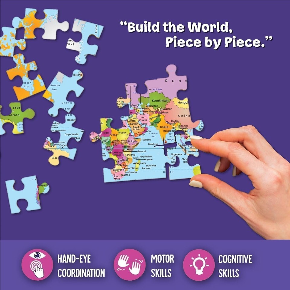 EDUCATIONAL FUN: It aids children in discovering continents, countries, and oceans while boosting their spatial awareness and cognitive abilities.