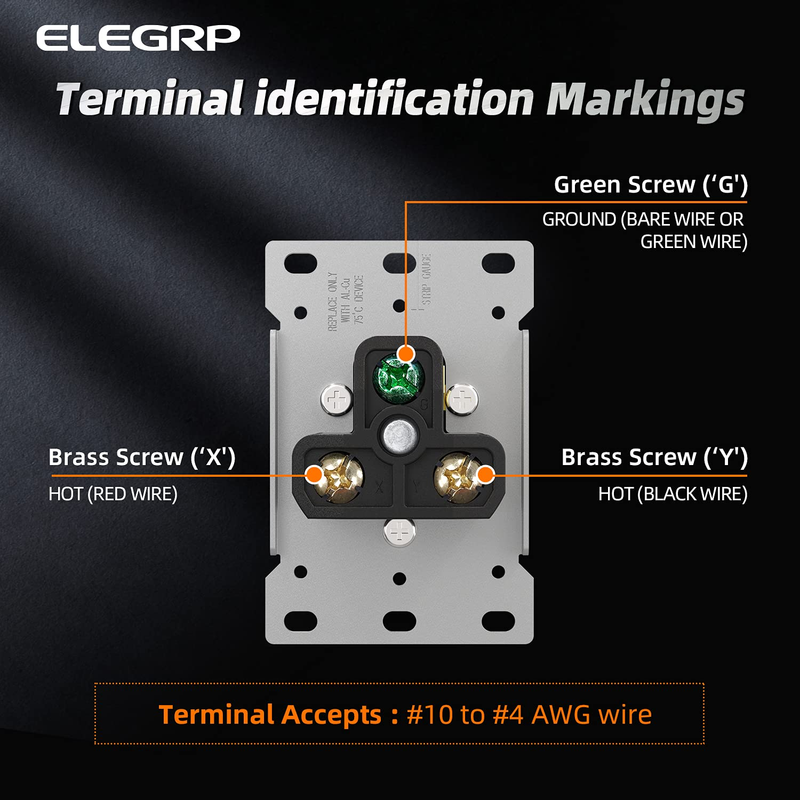 ??Easy Installation? Terminals marked for easy identification and fast wiring. Terminal Accepts #10, #8 to #4 AWG. Receptacles will accept copper or aluminum wire.