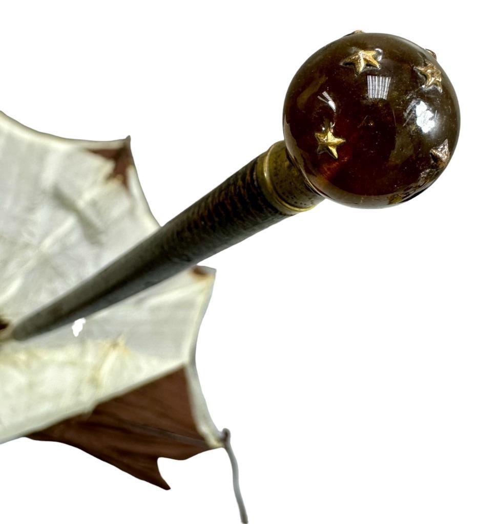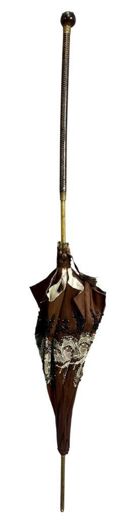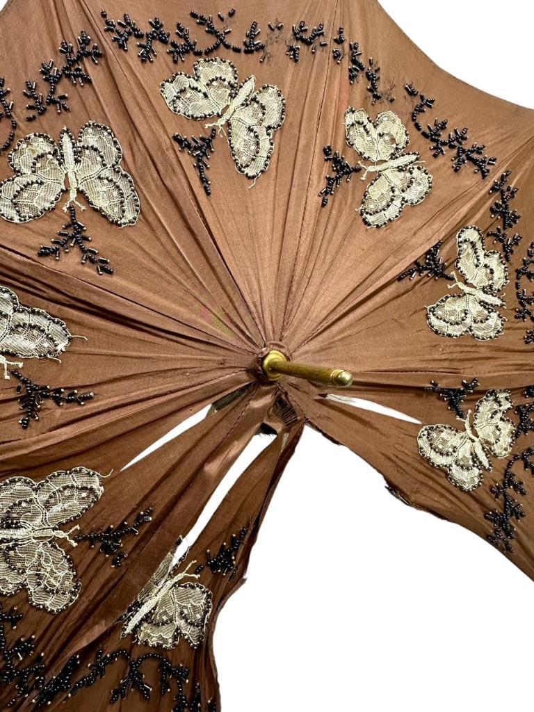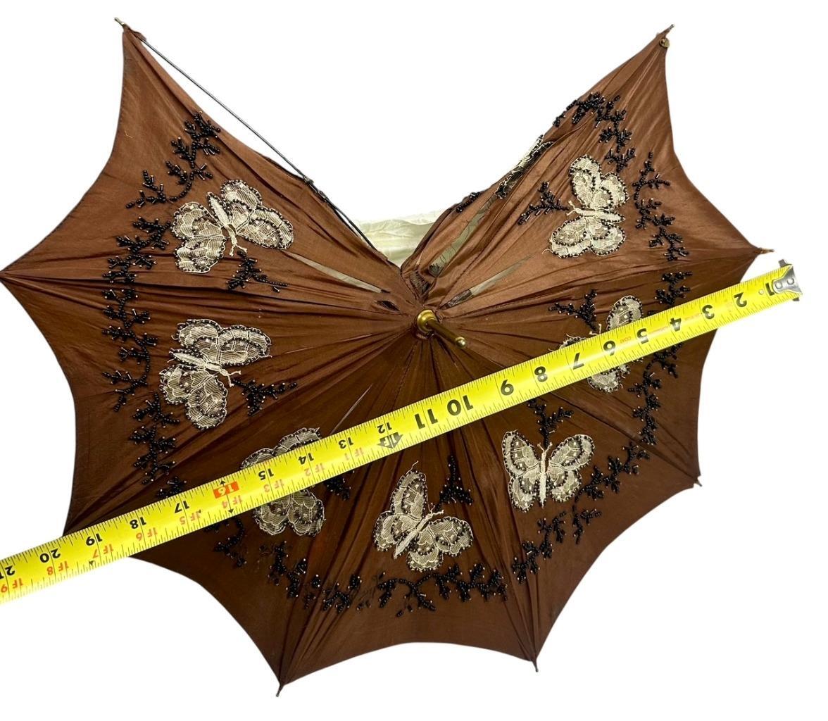 Antique Victorian Ladies Umbrella Parasol Beads With Butterflies Gorgeous antique item that is very fragile and tore when we opened it so we are selling it AS-IS For Parts or Repairs Comes as shown