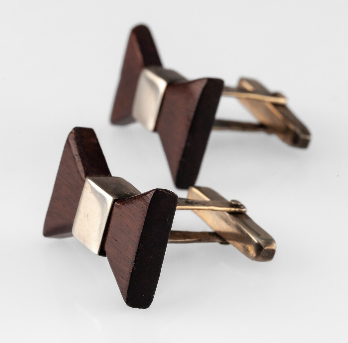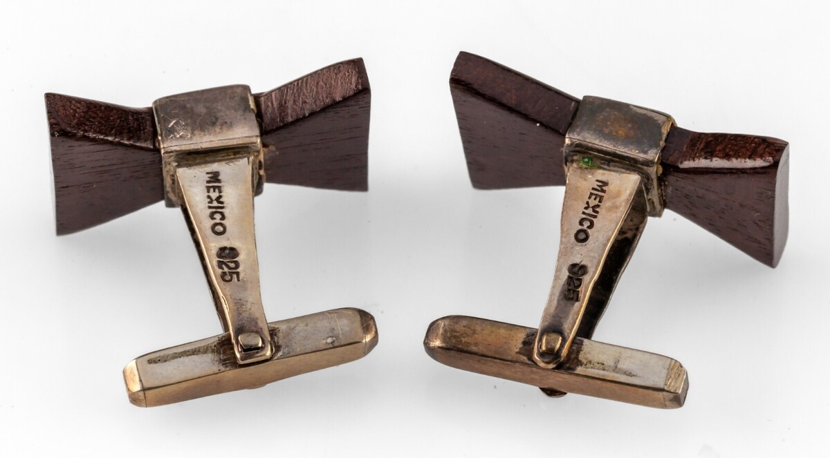 Vintage Taxco Mexiko signierte Beto Sterling Silber dunkles Holz Bowtie Manschettenknopfe