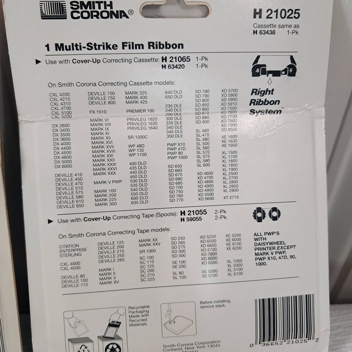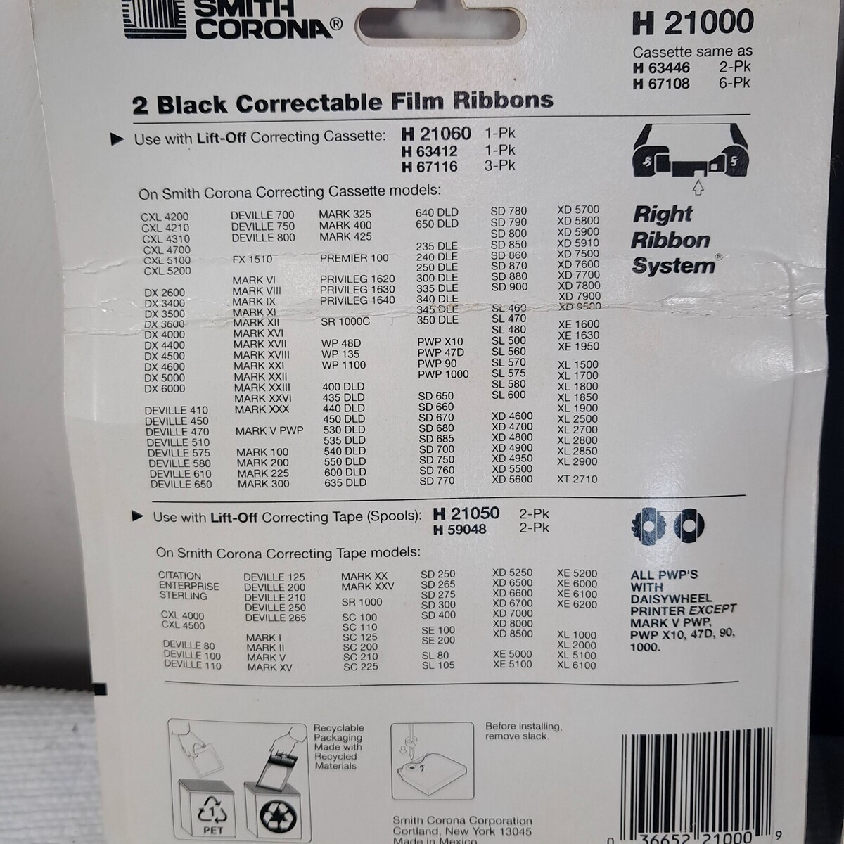 See pics for details. Package condition as shown. Includes Smith Corona H Series 21000 Correctable Film Ribbons Black 2 Pack Multi Strike film ribbon H21025