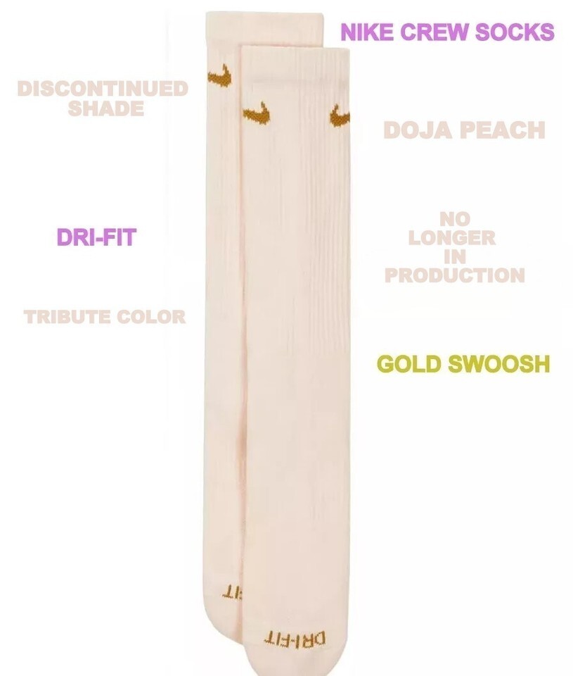 ONE PAIR NIKE DRI-FIT EVERYDAY PLUS Performance Cushion Crew Socks DOJA PEACH WITH GOLD SWOOSH SIZE WOMEN 10-13