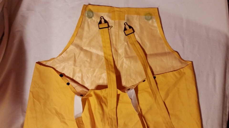 BRIGHT ORANGE XXXL 42X31 PULL UP WET RAIN SUIT PANTS BOTTOMS SUSPENDERS DURABLE