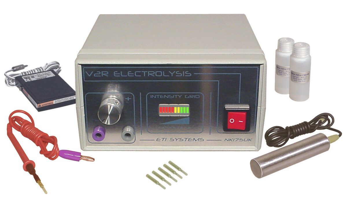 Complete Home Use System Includes: Precision blend electrolysis system: Adjustable 300-2,000ยตA (0-100)(10A-3) 27.125mHZ RF, probe stylus, anode, 2 Oz. of conductivity gel anode prep, foot switch, 5 sterile disposable probes (.003 R), 1 year total coverage warranty (additional years are available), and Complete instructions. *Equipment is compatible with all major-brand electrolysis probes.
