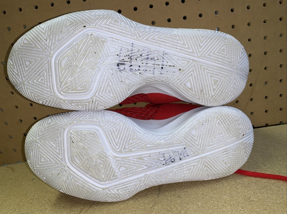 These shoes are in really good shape. They are very clean on the outside no snags or scuffs in the mesh. The shoelaces are nice and clean not frayed. The bottom soles have lots of tread left and are nice and soft. The insoles are clean and are still nice and soft. Overall condition is very good.