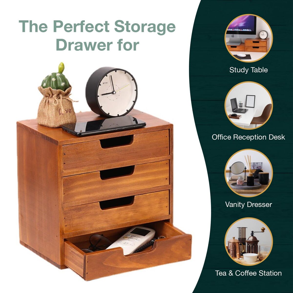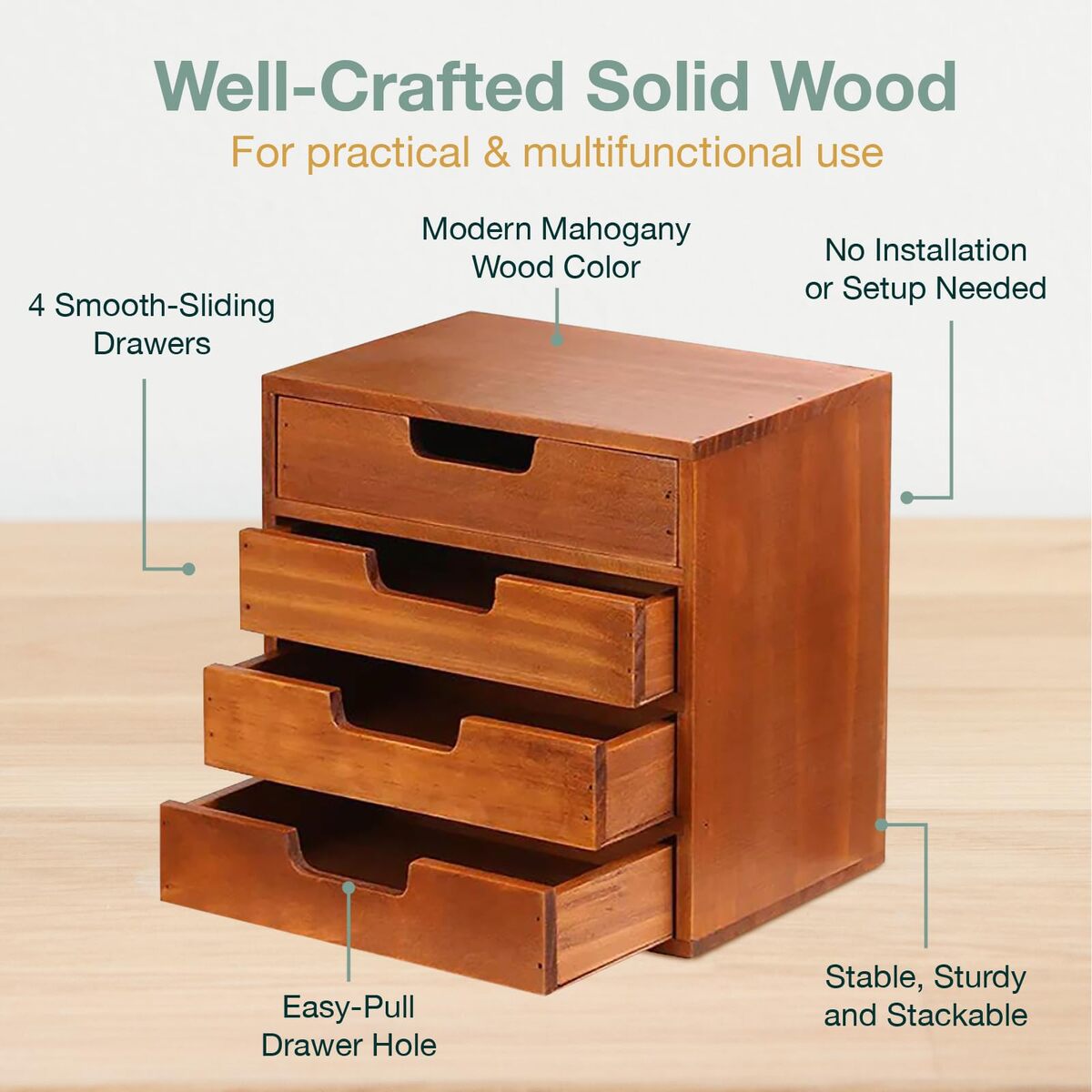 Multiple Desktop Shelf Drawers - Declutter small accessories on your desk using a more durable storage accessory. The Woodaholic Double Modern Wood Drawer is designed to keep your pens, notes, keys, charger cables and other items in order.,Modern Wood Design for Any Interior Aesthetic - In a simple, minimalist wooden design that never goes out of style, the Woodaholic Storage Drawer for Desktop makes it perfect as your bedside storage drawer, office monitor desk stand, or even as an extra drawer storage for the closet,Durable Stackable Drawer Cabinet - Want more of these cute desktop drawers? Don?t worry about them taking up more desk space as you can simply stack these wooden storage boxes atop one another without compromising function or longevity,Ideal Vanity Organizer - With its sturdiness and the perfectly flat top surface, this 4-level wood countertop drawer makes for the perfect organizer for your makeup, skincare supplies and beauty tools. Allowing for more desk space, our 4-drawer storage box makes it easier for you to get items you need in no time,Mahogany Desk Drawer Made for Your Satisfaction - Using a sustainable reliable material, Woodaholic products provide you with convenient home solutions. If there is anything about our double wooden drawer storage unit that's not at par with your expectations, please reach out to us so we can make things better