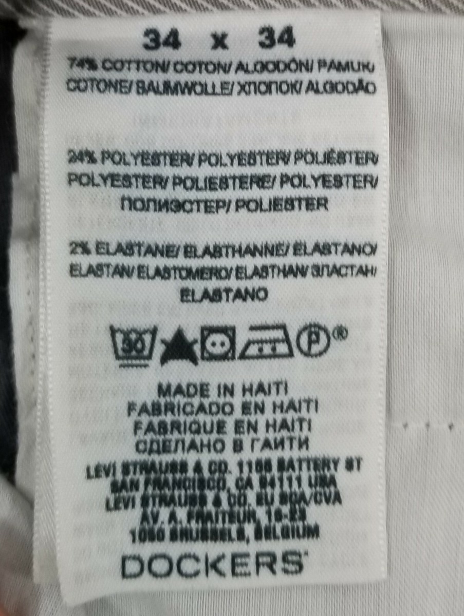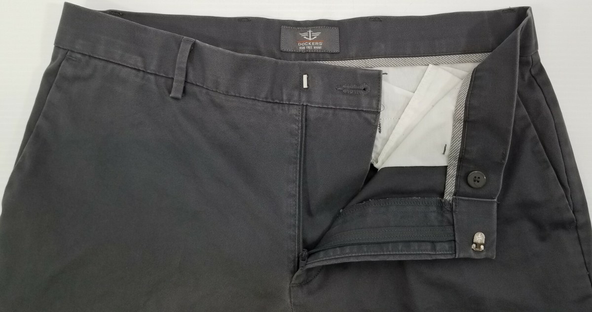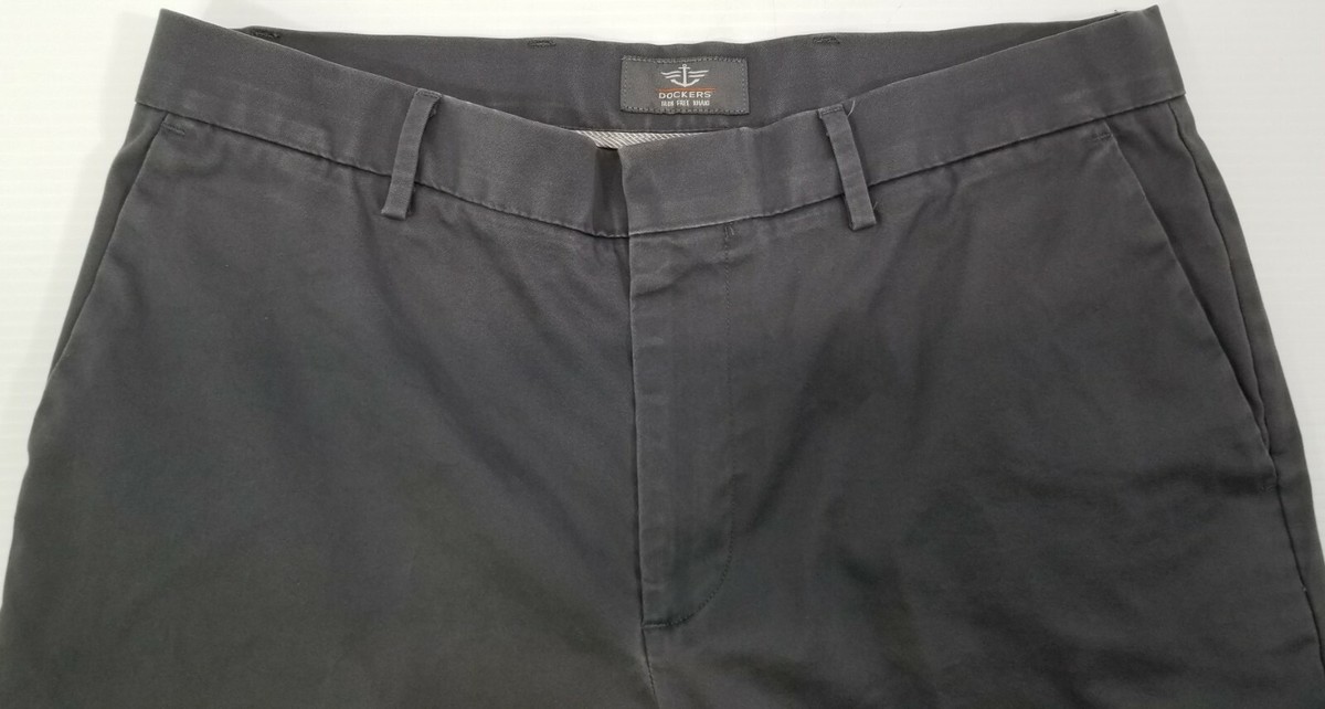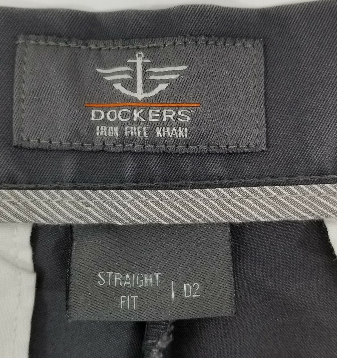 V) Dockers Straight Fit D2 Iron Free Khaki Gray Pants 34x34 Flat Front