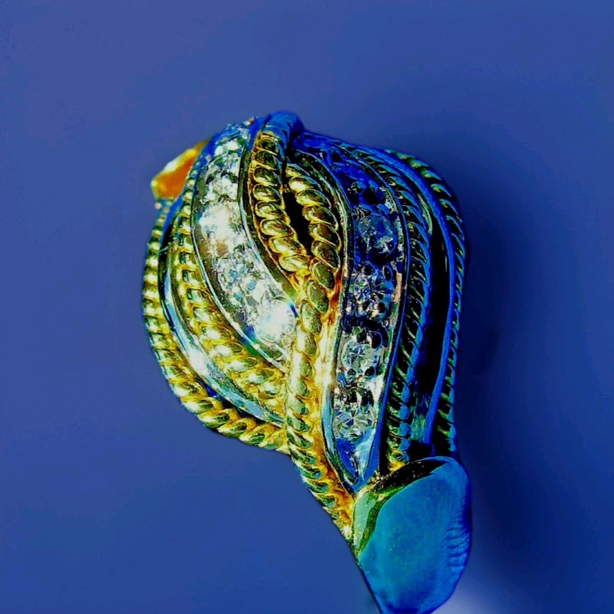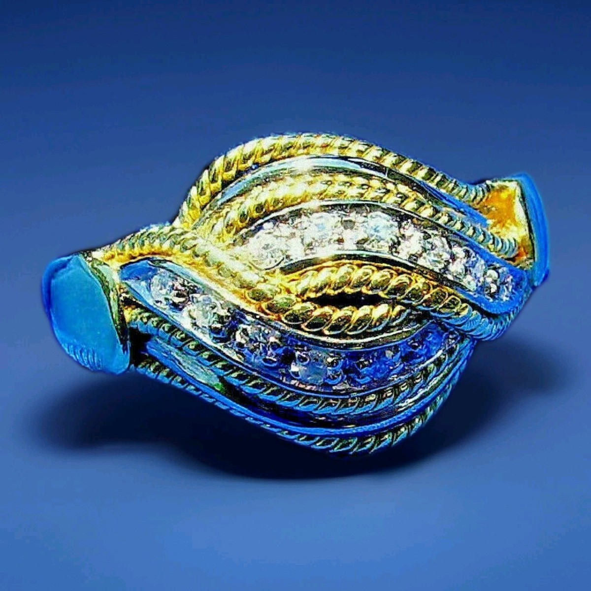 Vintage Original Damiani Diamond Ring Deco Style Solid 18k Gold Rare Statement