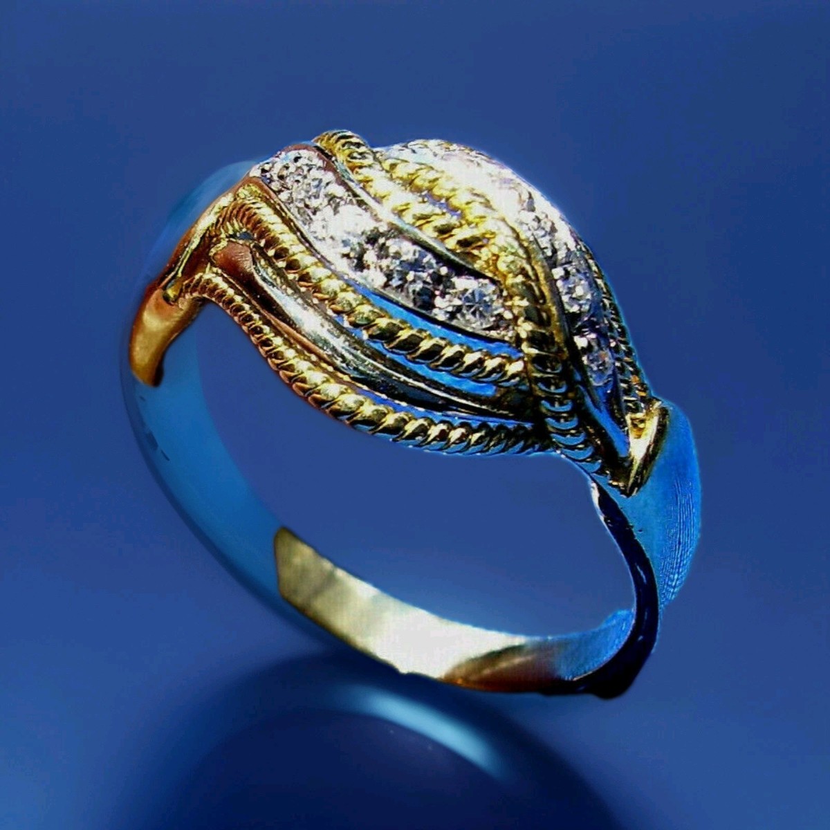 Magnificent ring features original geometric details of rope twist braided cable.