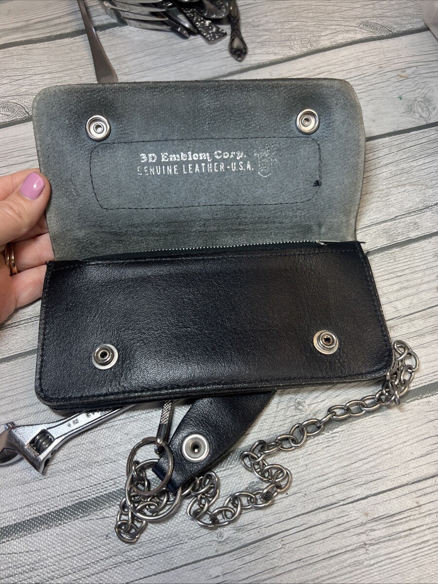 Vintage Leather Harley Davidson Wallet With Chain And Wrench