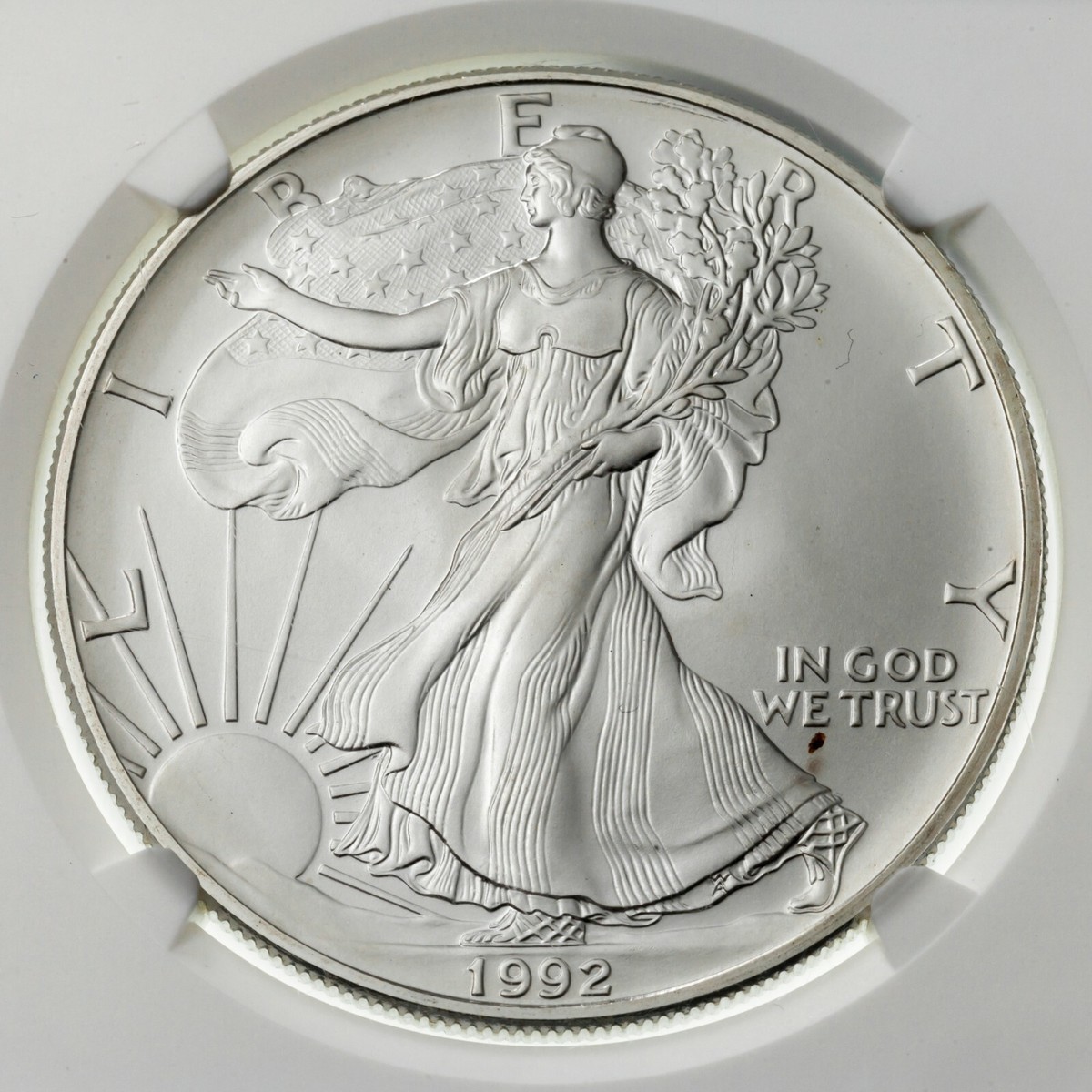 1992 $1 Silver American Eagle Valutato Da NGC Come MS-69