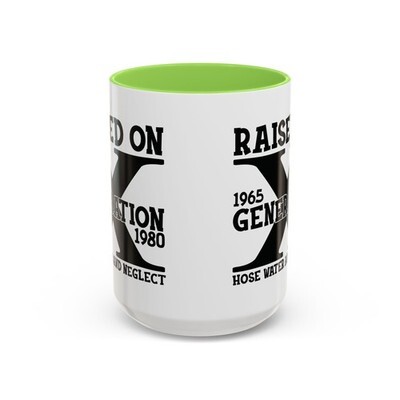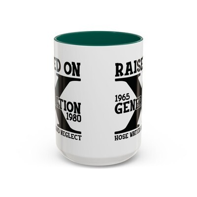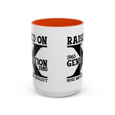 This glossy ceramic mug carries attitude and memory in every sip. The raised-on-hose-water-and-neglect line speaks to Gen X grit ? mornings made with burnt coffee and backyard resilience. Bright accent colors around the handle and interior add a playful contrast to the tongue-in-cheek message, while the ORCA-coated print keeps the design punchy through daily use. It fits into slow, no-nonsense routines: early shifts, late-night drives, garage tinkering, or weekend yard work. The sturdy C-shaped handle and satisfying weight make each drink feel deliberate. Choose a bold interior to reflect personality, and reach for this cup when you want something honest, a little wry, and built to last.