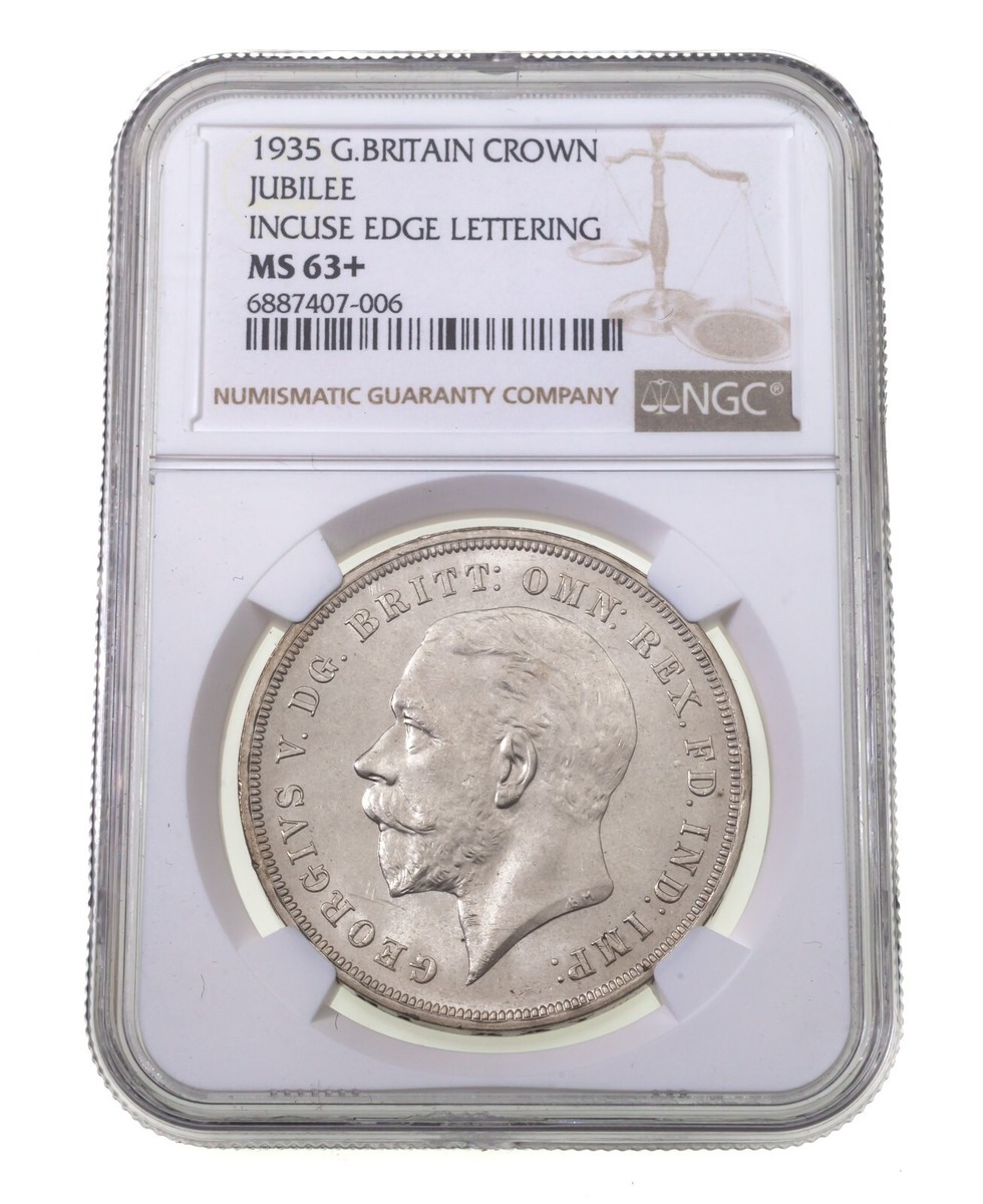 1935 G. Britain Crown Jubilee Coin, Incuse Edge Lettering MS-63 KM 842