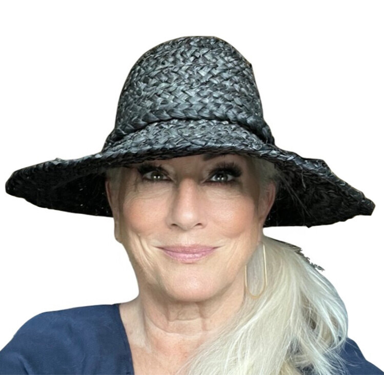 LIZ CLAIBORNE RETRO Dress/Sun/Beach//Kentucky Derby/Wide Brim Black Straw Hat