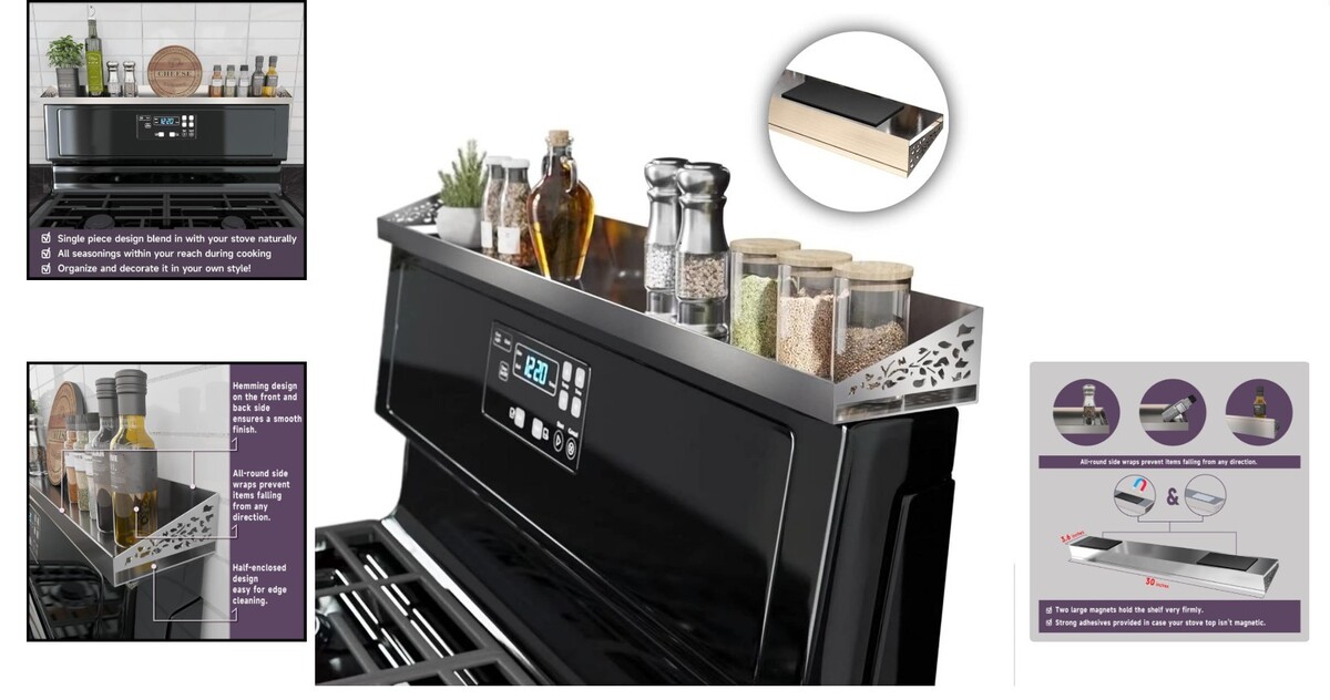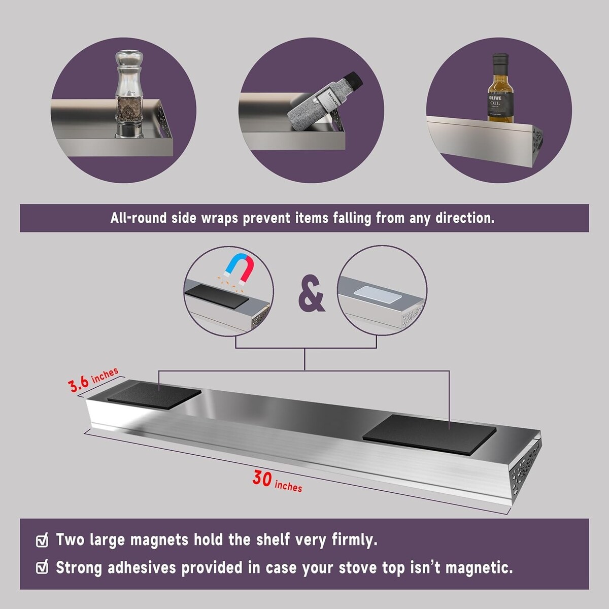 30" Stainless Steel Magnetic Spice Rack – Effortless Kitchen Organization