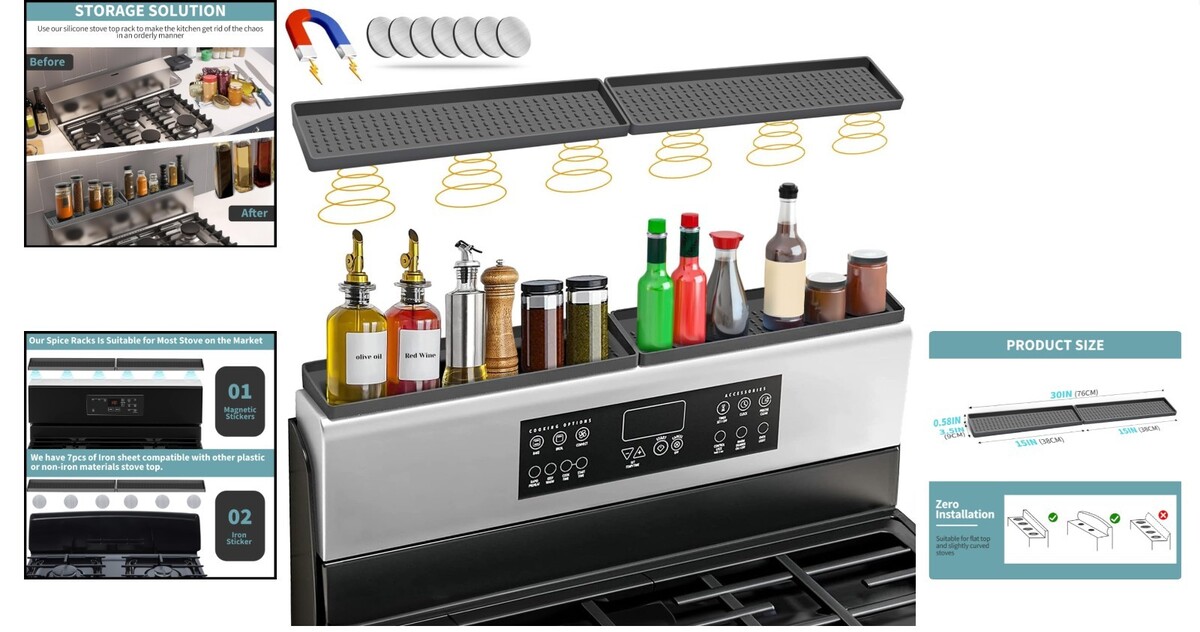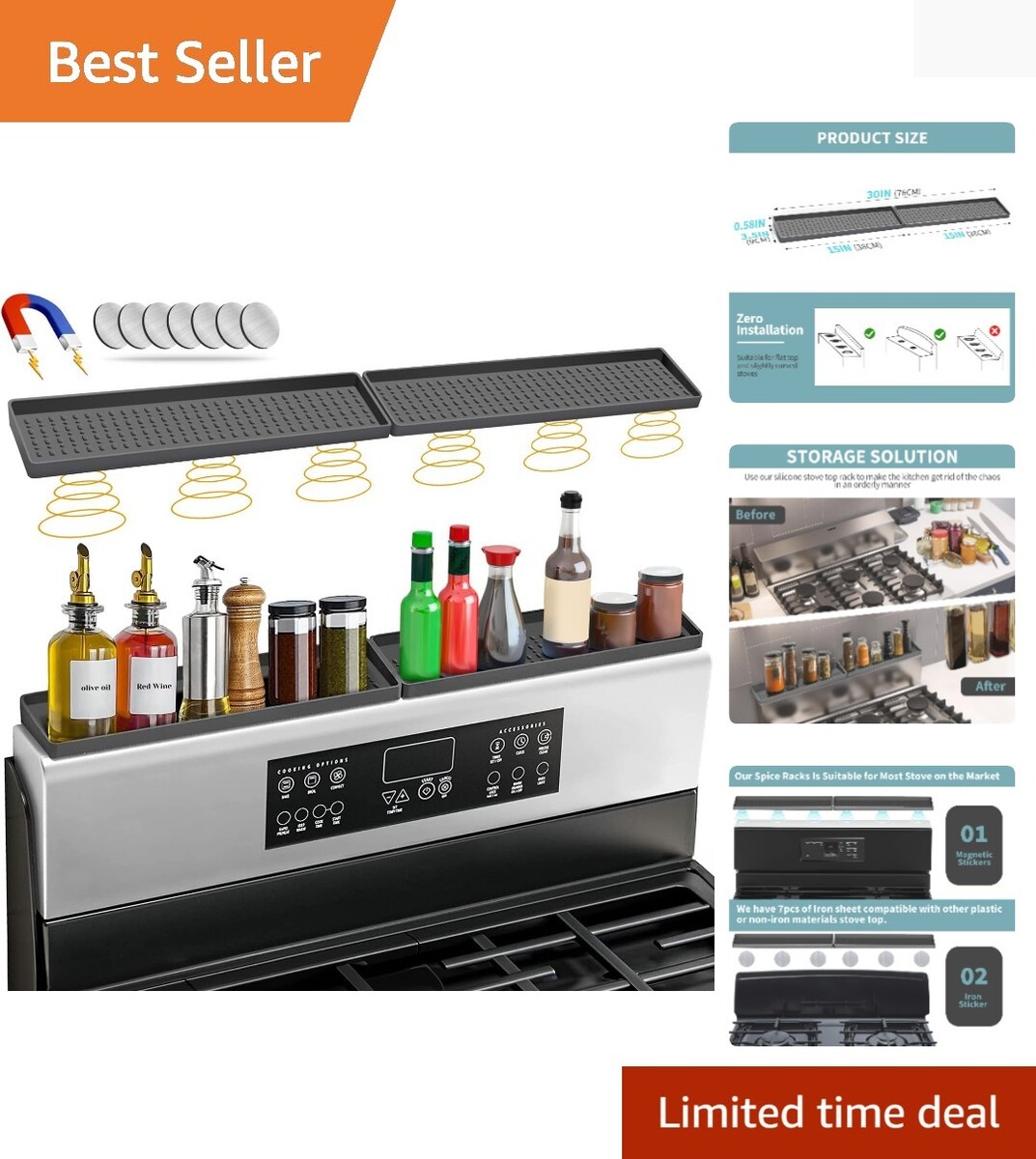 Non-Slip Magnetic Spice Rack for Stovetops - Stylish 30" Silicone Organizer