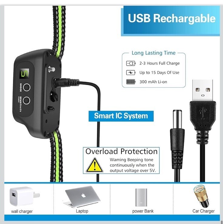 The CZCCWD Smart Auto Anti bark Dog Collar is an advanced training tool designed to effectively curb your dog's barking. With vibration, shock stimulation, and ultrasonic control methods, this collar provides a variety of ways to train your dog to stop barking. It is waterproof, rechargeable, and features adjustable shock levels for a customizable training experience. The low battery indicator ensures you are always aware of your battery level, while the automatic anti-bark feature does the work for you. Perfect for large and medium-sized dogs, this collar is a reliable solution for training your furry friend.