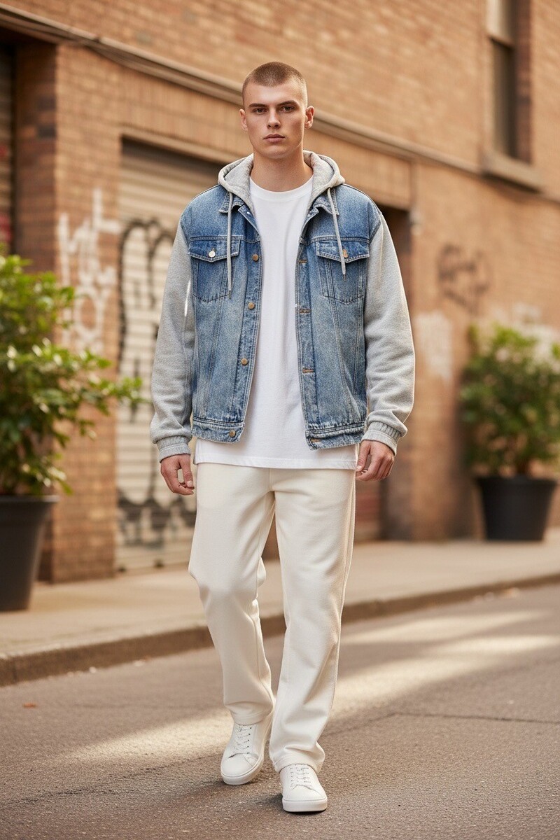 Sukoda Denim Jacket w Hoodie Mens L Quilted and 50 similar items