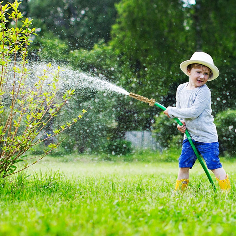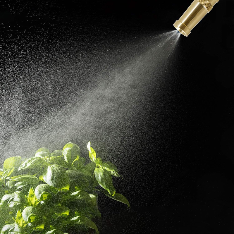 ADJUSTABLE TWIST HOSE NOZZLE: Triumpeek brass hose nozzle has four holes on the tip to let the water out. With twisting the upper barrel, the water can change from a fine mist to a powerful jet stream, meeting your needs from high pressure cleaning to garden hosing.
