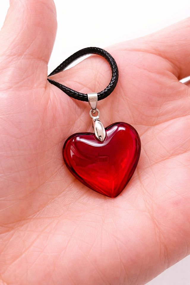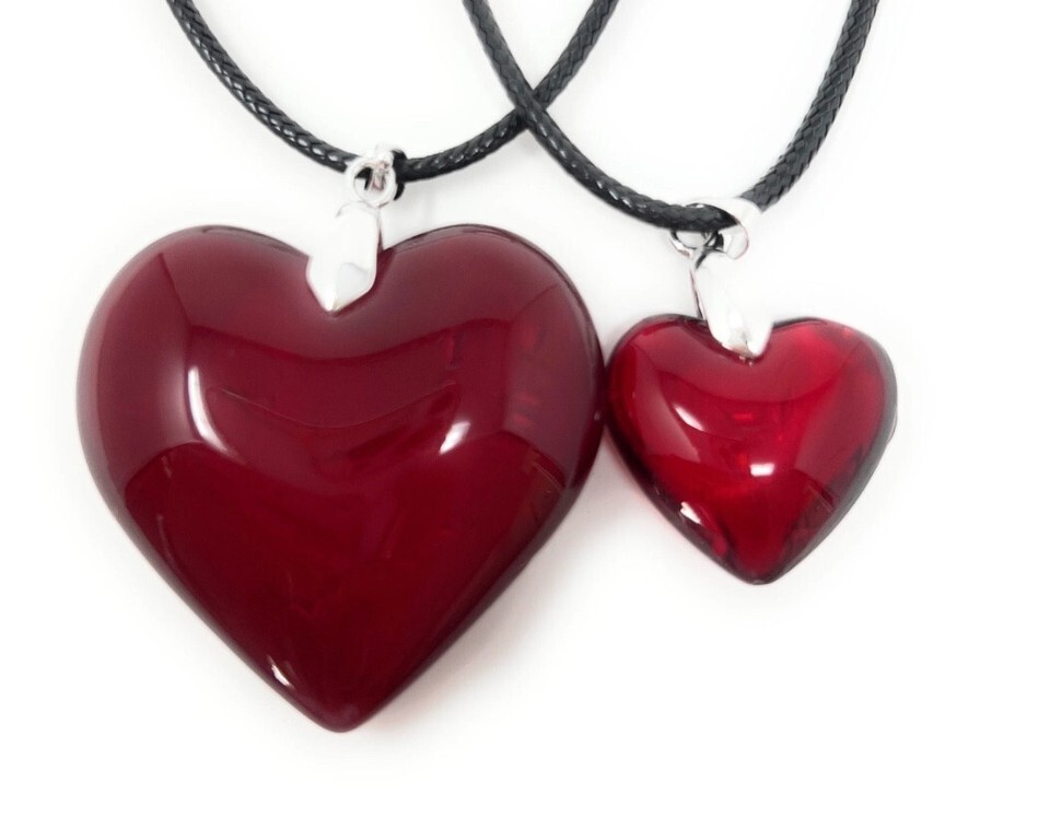 Red Glass Small Heart Necklace Deep Red Puffy Heart Pendant Valentines Day
