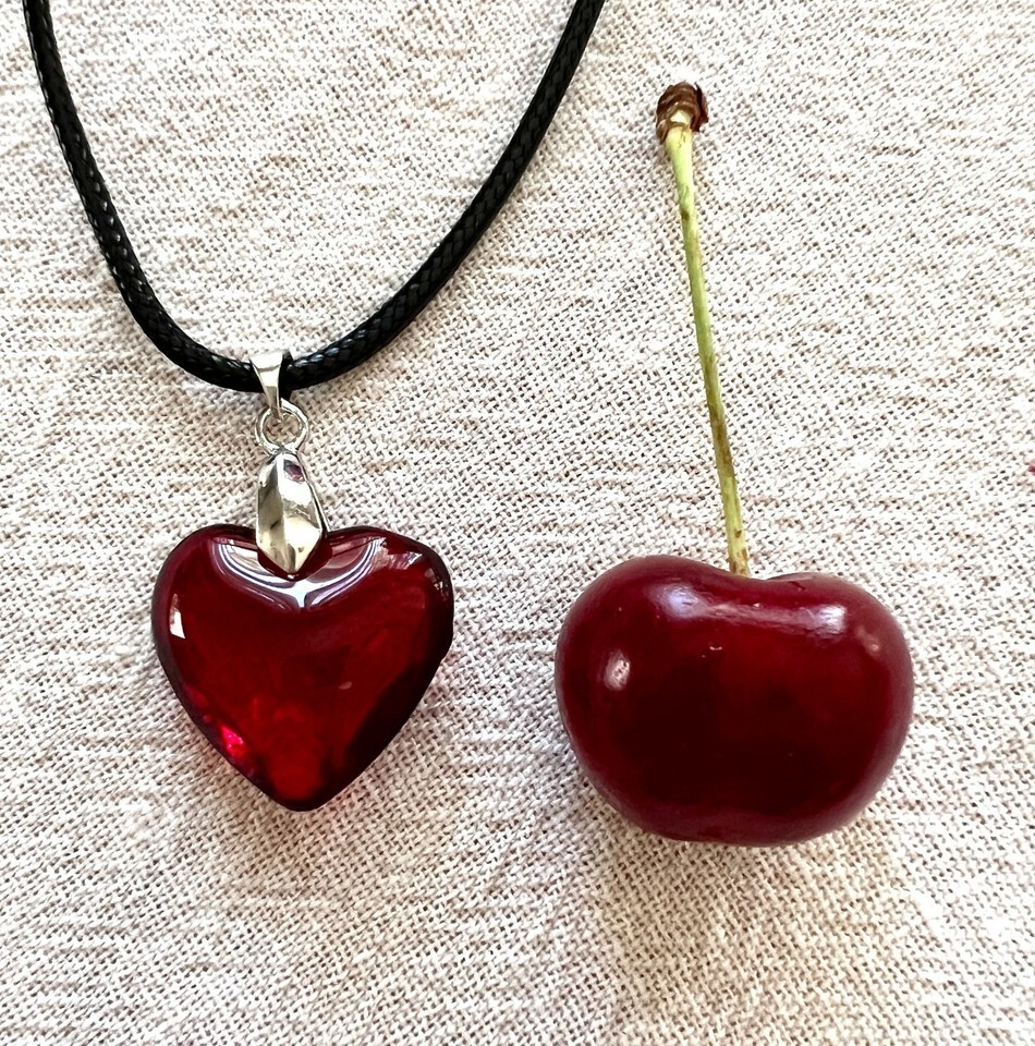 Red Glass Small Heart Necklace Deep Red and similar items