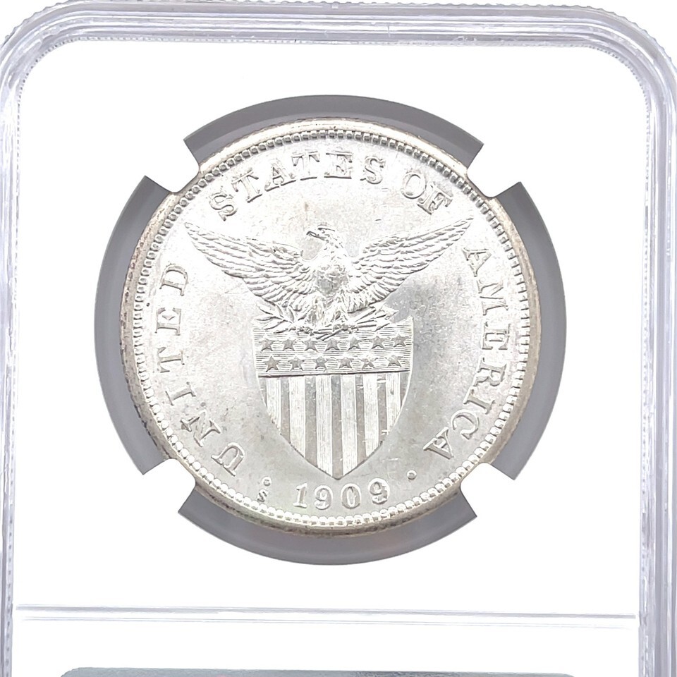 1909-S USA-PHIL Philippines Silver Peso NGC MS61 Certified Lustrous Silver Coin