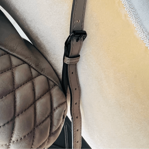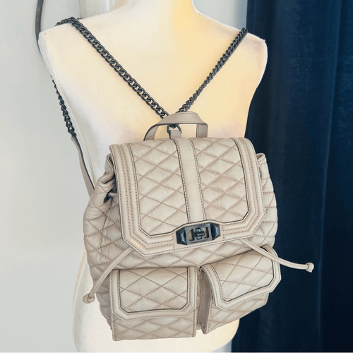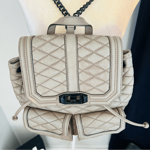 REBECCA MINKOFF QUILTED LOVE LEATHER BACKPACK PURSE, Tan/Gray, Luxury