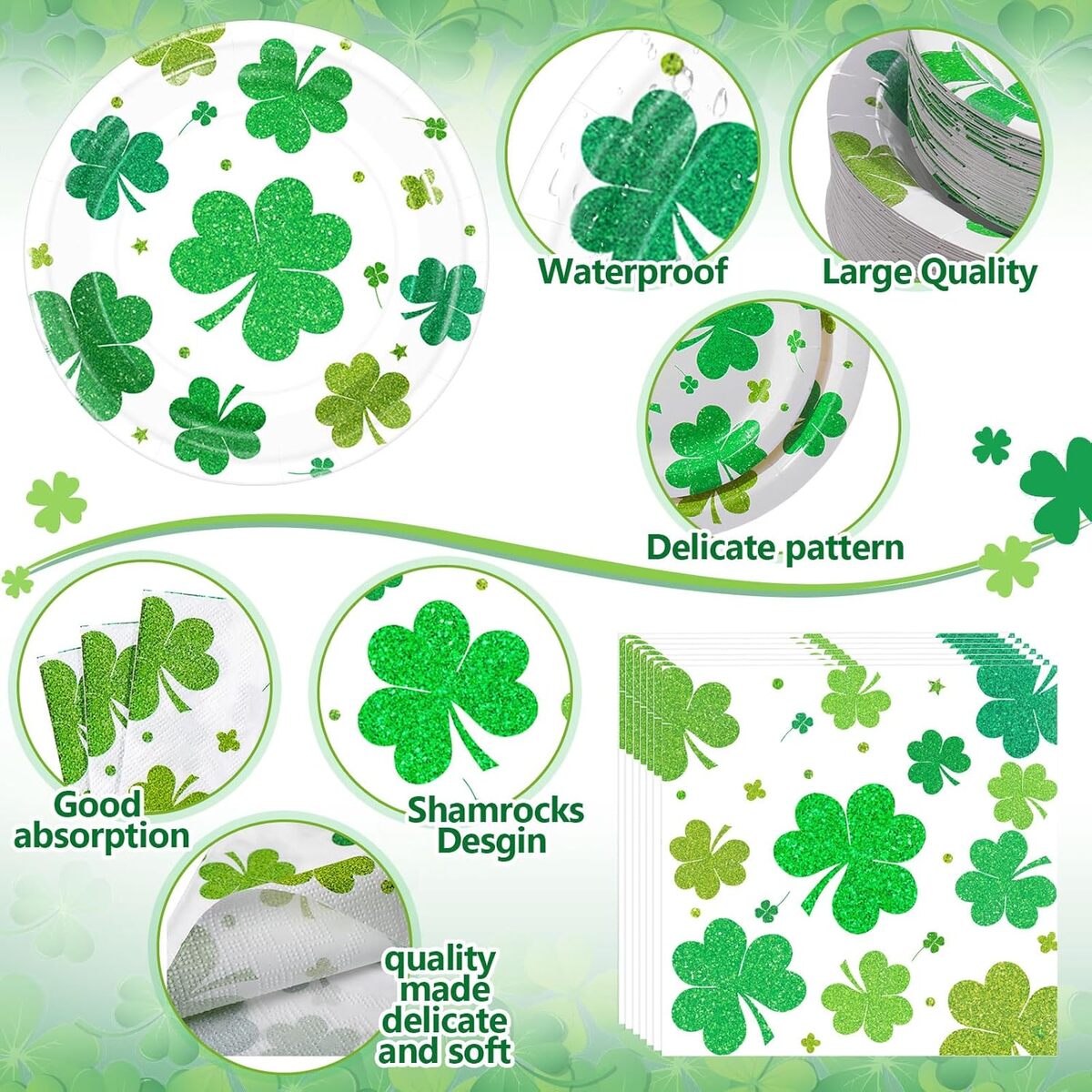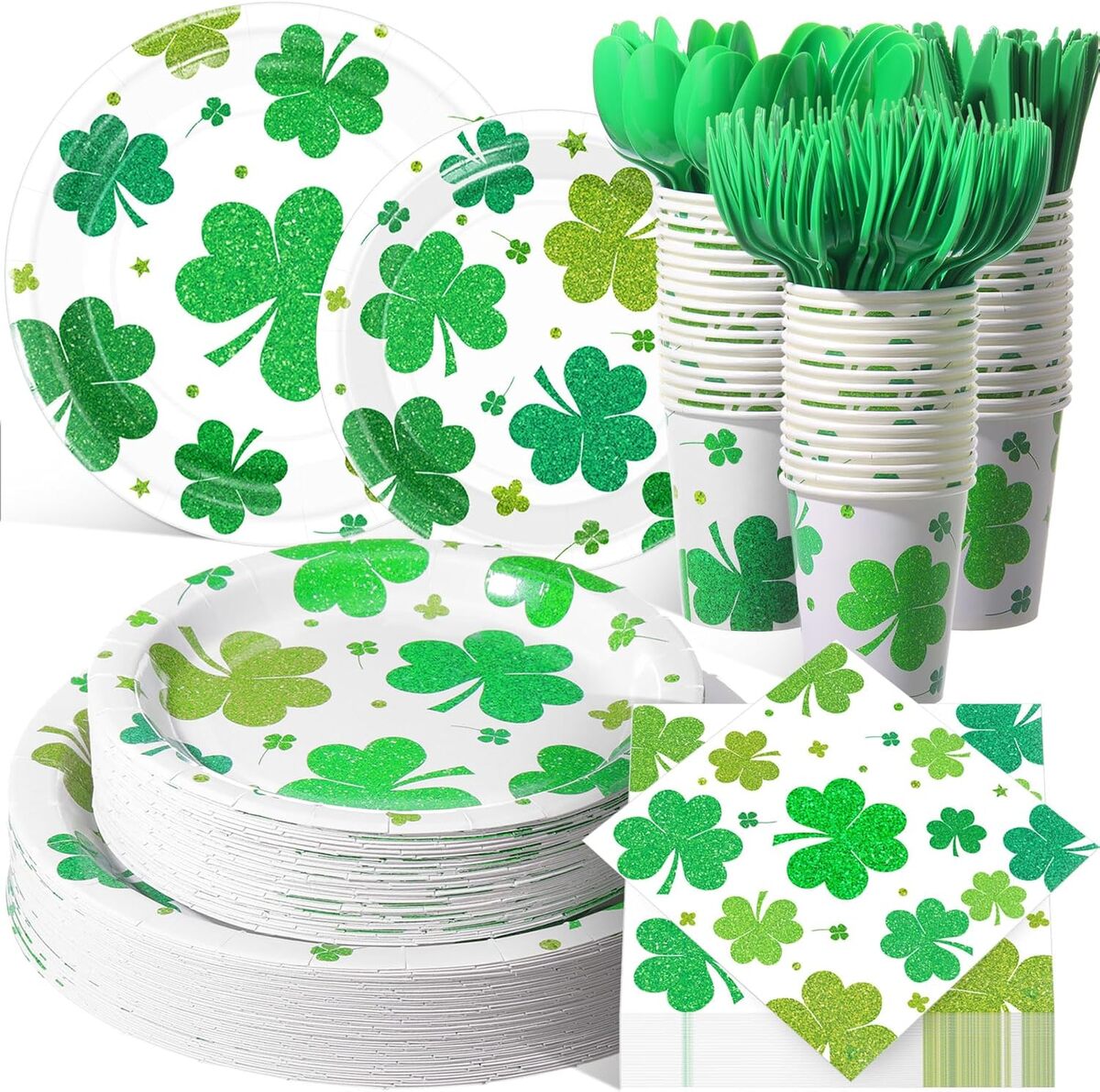 St. Patrick’s Day Shamrock Party Tableware Set – 400 Pieces – Serves 50